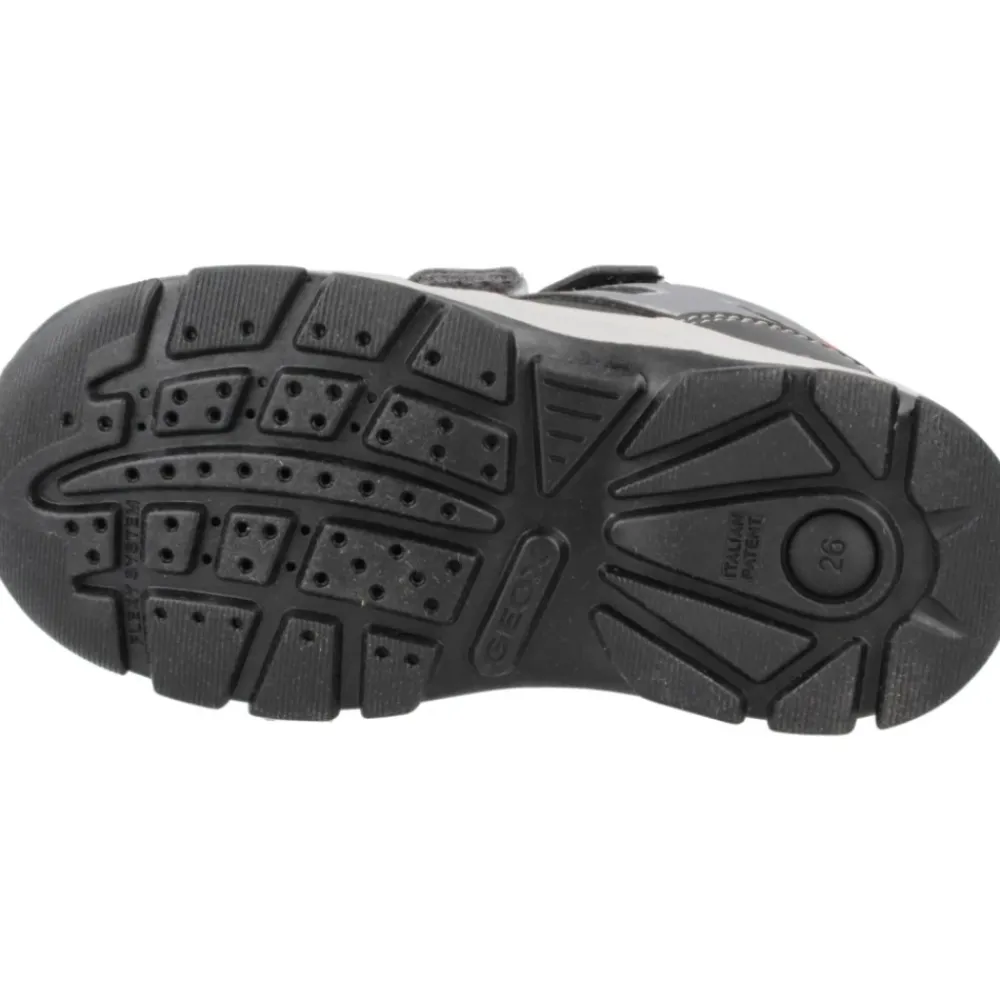 Die Geox Flanfil Jungenstiefel halten die Füße mit ihrer robusten Konstruktion und dem modernen Design warm und stilvoll. Wichtige Merkmale: Grau | Multicolor | Synthetisches Leder | Wasserabweisend | Klettverschluss | Doppelter Riemenverschluss | Maße und Passform: Normale Passform | Zusammensetzung und Pflege: Synthetisches Leder | Nylon | Mit einem weichen Tuch reinigen