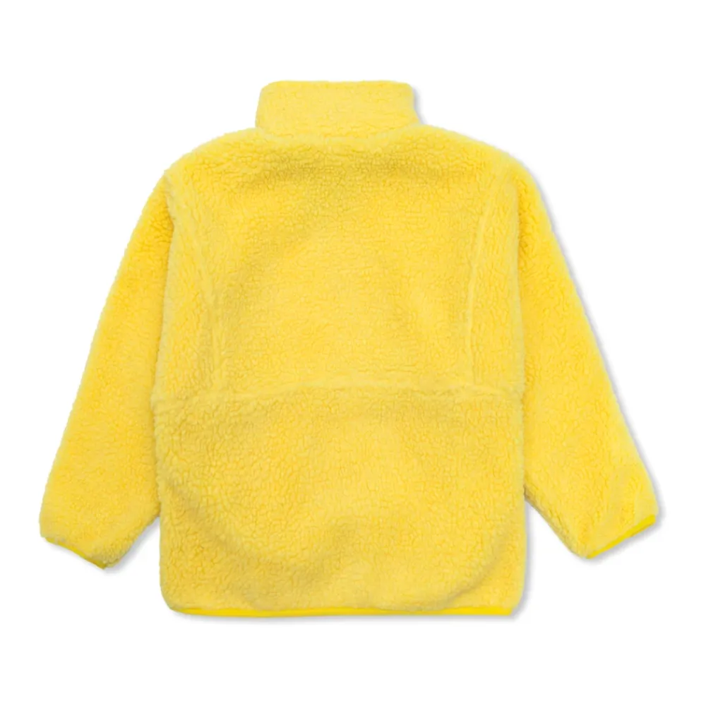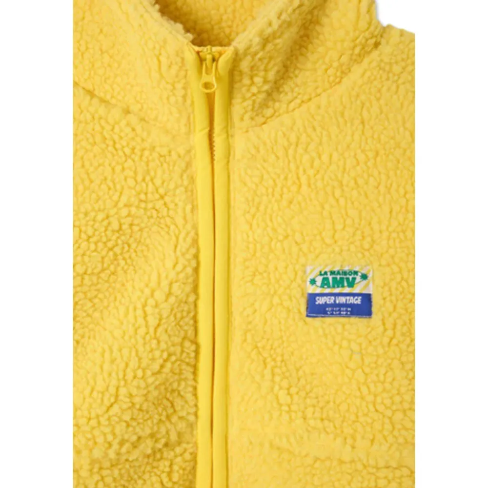 FLEECE MIT LOGO-PATCH ist ein raffiniertes Angebot von American Vintage Kids, das jungen Liebhabern von Stil und Komfort gewidmet ist. Es besticht durch einen einheitlichen, intensiv gelben Farbton, der die Garderobe eines Kindes perfekt aufhellt. Das weiche, flauschige ‚Teddy‘-Fleece umhüllt sanft den Körper und garantiert selbst an kühleren Tagen Wärme. Das Design zeichnet sich durch klare Linien und eine lockere Passform aus, ergänzt durch lange, weite Ärmel mit elastischen Abschlüssen sowie einen erhöhten Stehkragen. Ein praktischer Reißverschluss fügt sich nahtlos in das Gesamtfarbschema ein. Der einzigartige Charakter wird durch ein sorgfältig gesticktes Patch mit dem Logo ‚LA MAISON AMV, SUPER VINTAGE‘ und ein dezentes Etikett mit dem Namen des Herstellers im Nacken betont. WARUM LOHNT ES SICH, DIESES PRODUKT ZU KAUFEN? * Edles Material, das außergewöhnlichen Komfort und Langlebigkeit bietet * Intensive, belebende Farbe als markantes Akzent * Logo-Details für einen exklusiven Touch * Durchdachter Schnitt für Bewegungsfreiheit und angenehmes Tragen