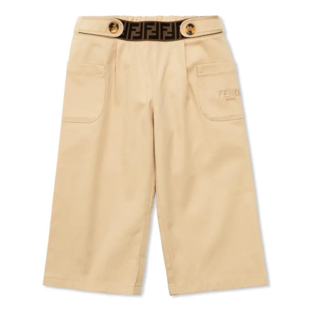 Die Fendi Gabardine-Hosen verbinden charakteristische Details mit hohem Tragekomfort. Sie kombinieren einen Bund vorne mit FF-Muster und ein gesticktes Logo mit einem elastischen Rücken für eine anpassungsfähige Passform. Hauptmerkmale: Beige | Baumwolle | Leichter Stretch | Weicher, hautfreundlicher Stoff | Große, funktionelle Vordertaschen | Elastischer Bund hinten | FF-Signatur-Muster am vorderen Bund | Gesticktes „FENDI ROMA“-Logo | Zierknöpfe an der Taille | Maße & Passform: Elastischer Bund hinten für eine anpassungsfähige Passform | Material & Pflege: Oberstoff: 97 % Baumwolle, 3 % Elastan | Stickerei: 100 % Polyester | Band: 68 % Polyamid, 22 % Polyester, 10 % Elastan