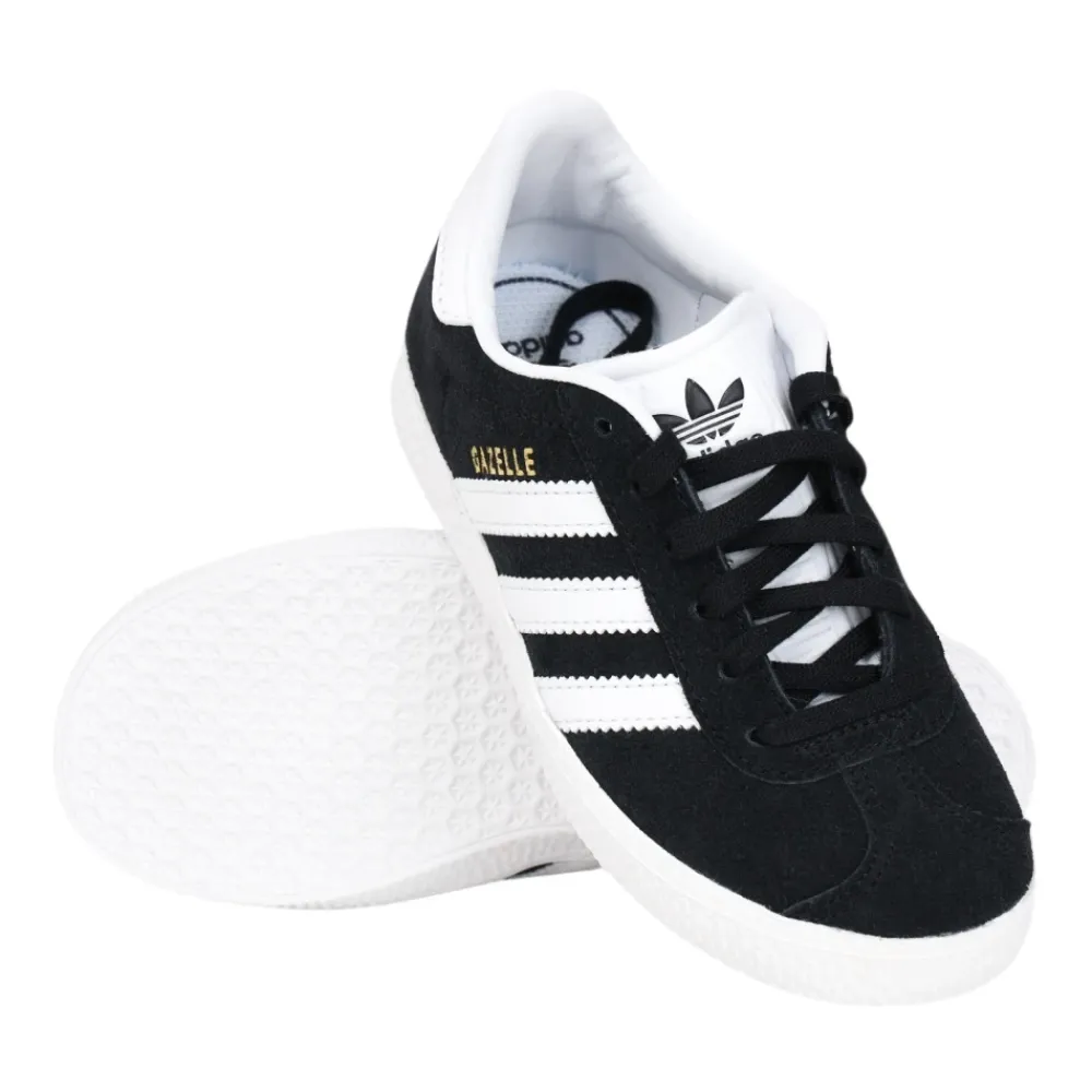 ADIDAS ORIGINALS Schwarze und weiße Gazelle C Schnürsneaker für Jungen und Mädchen aus der Frühjahr-Sommer-Kollektion. Hergestellt mit einem Obermaterial aus Wildleder und atmungsaktiver Mesh-Polsterung für ein einzigartiges Gefühl und Passform. Mit drei Klettverschlüssen für einfaches Anziehen, antimikrobieller OrthoLite-Innensohle für trockene und saubere Füße und 3 Streifen im Zickzack-Schnitt für einen kompletten Gazelle-Stil. Metallische Markenbuchstaben an der Seite. Schnürverschluss. Normale Passform.