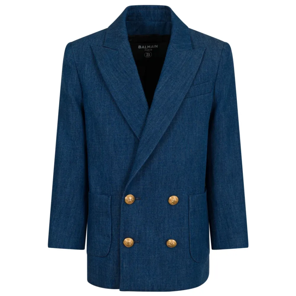 Der geknöpfte Blazer von Balmain zeichnet sich durch spitze Revers und goldfarbene Knöpfe für einen strukturierten, raffinierten Look aus. Er eignet sich hervorragend als elegantes Layering-Teil für Smart-Casual- und formelle Outfits. Hauptmerkmale: Blau | Blu | Aufgesetzte Taschen | Manschettenknöpfe | Knopfverschluss vorne | Spitzes Revers | Geknöpfte Silhouette | Goldfarbene Knöpfe
