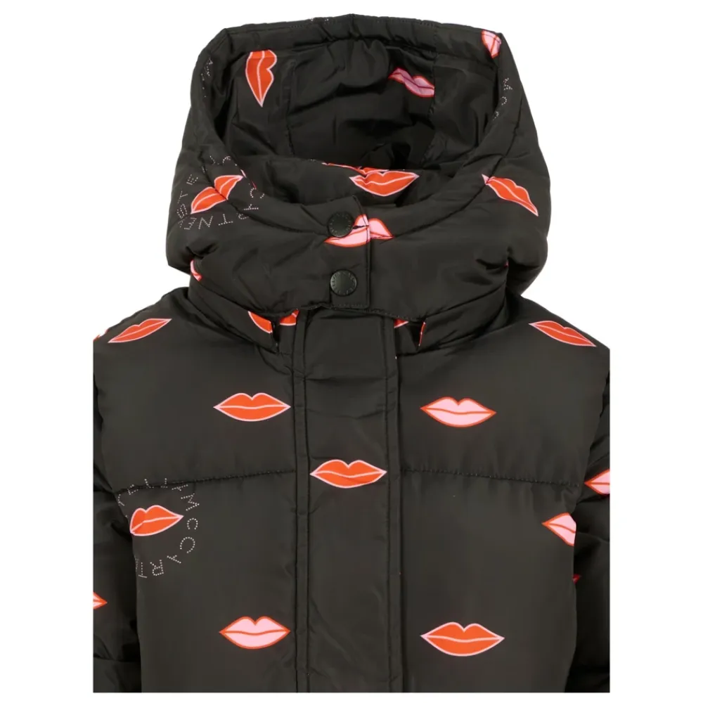Bleiben Sie warm und stilvoll mit dieser Stella McCartney Kids Black Winter Jacket. Diese schwere Daunenjacke verfügt über eine abnehmbare Kapuze, einen Frontreißverschluss und Druckknopfverschluss sowie Seitentaschen. Verziert mit einem Munddruck und kreisförmigem Logo, ist sie perfekt für die kälteren Monate. Hergestellt aus 100% Polyester. Maschinenwäsche bei 30°C.