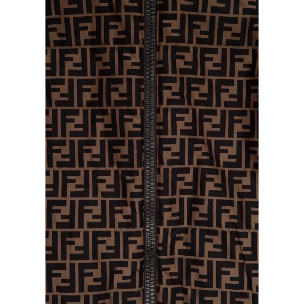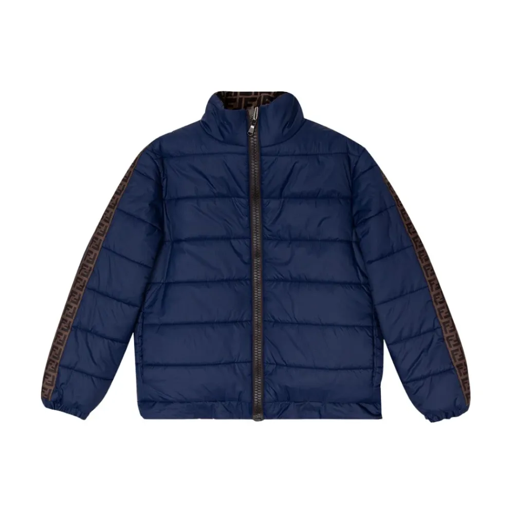 Die gesteppte Wendejacke von Fendi kombiniert eine marineblaue, gesteppte Außenseite mit einer monogrammgefütterten Innenseite für zwei elegante Looks in einem. Sie wird mit einem Reißverschluss geschlossen und verfügt über praktische Taschen und einen Kordelzug am Saum für verstellbaren Schutz. Hauptmerkmale: Blau | Marineblau | Wendbares Design | Reißverschluss | Zwei Eingrifftaschen | Kordelzug am Saum | Gesteppte Außenseite | Lange Ärmel mit Rippenbündchen | Monogramm-Musterfutter