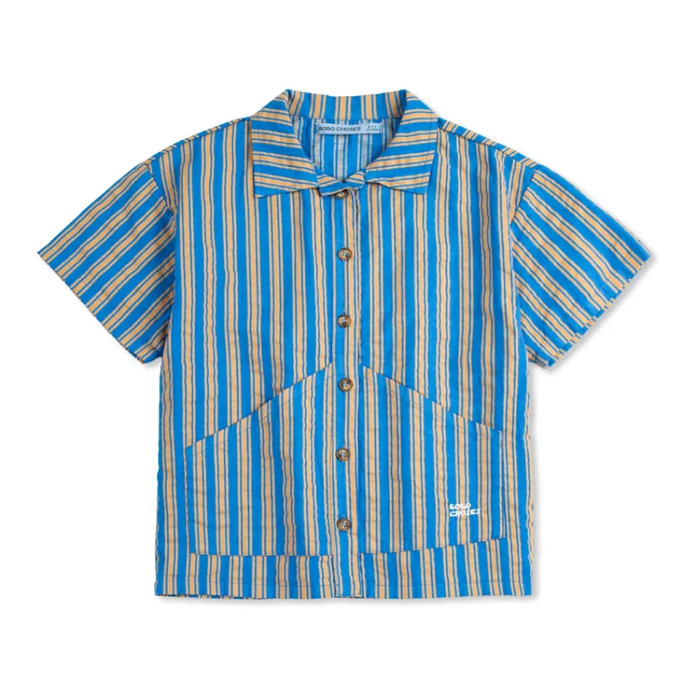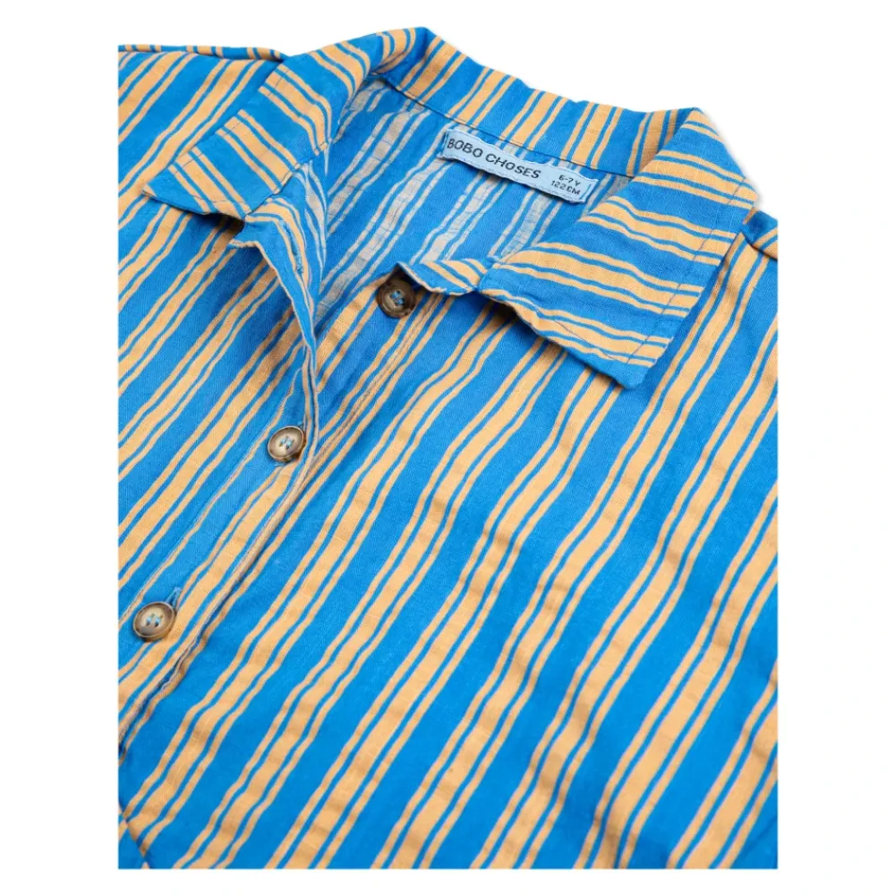 Das gestreifte Shirt von Bobo Choses kombiniert eine blaue Basis mit vertikalen gelb-orangen Streifen für einen modernen, tragbaren Look. Die leichte Baumwolle und der feine Kragen mit Knopfverschluss machen es alltagstauglich. Hauptmerkmale: Blau | Gelb-Orange | Baumwolle | Atmungsaktives Material | Leicht | Knopfverschluss | Kurze Ärmel | Vertikales Streifenmuster | Weich fallender Kragen | Gerader Saum | Knöpfe in Perlmutt-Optik | Maße & Passform: Klassische, leicht lockere Passform | Materialzusammensetzung & Pflege: 100 % Baumwolle | Maschinenwäsche kalt (30°C). Nicht bleichen. Bei niedriger Temperatur bügeln. Nicht chemisch reinigen. Nicht im Wäschetrockner trocknen.