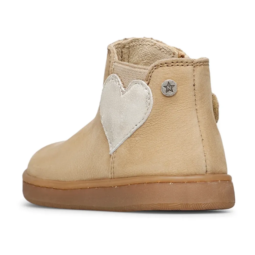 Naturino Glarny High 2 ist ein Leder-Stiefelette, die ein dekoratives Platinherz mit einem leichtgängigen Reißverschluss und einem elastischen Seiteneinsatz für schnelles Anziehen kombiniert. Hauptmerkmale: Beige | Beige Gold | Leder | Reißverschluss innen | Lederfutter | Lederinnensohle | Gummilaufsohle | Abgerundete Spitze | Platinherz-Detail an der Seite | Elastischer Seiteneinsatz | Zusammensetzung & Pflege: Leder (Obermaterial) | Leder (Futter) | Leder (Innensohle) | Gummi (Laufsohle)