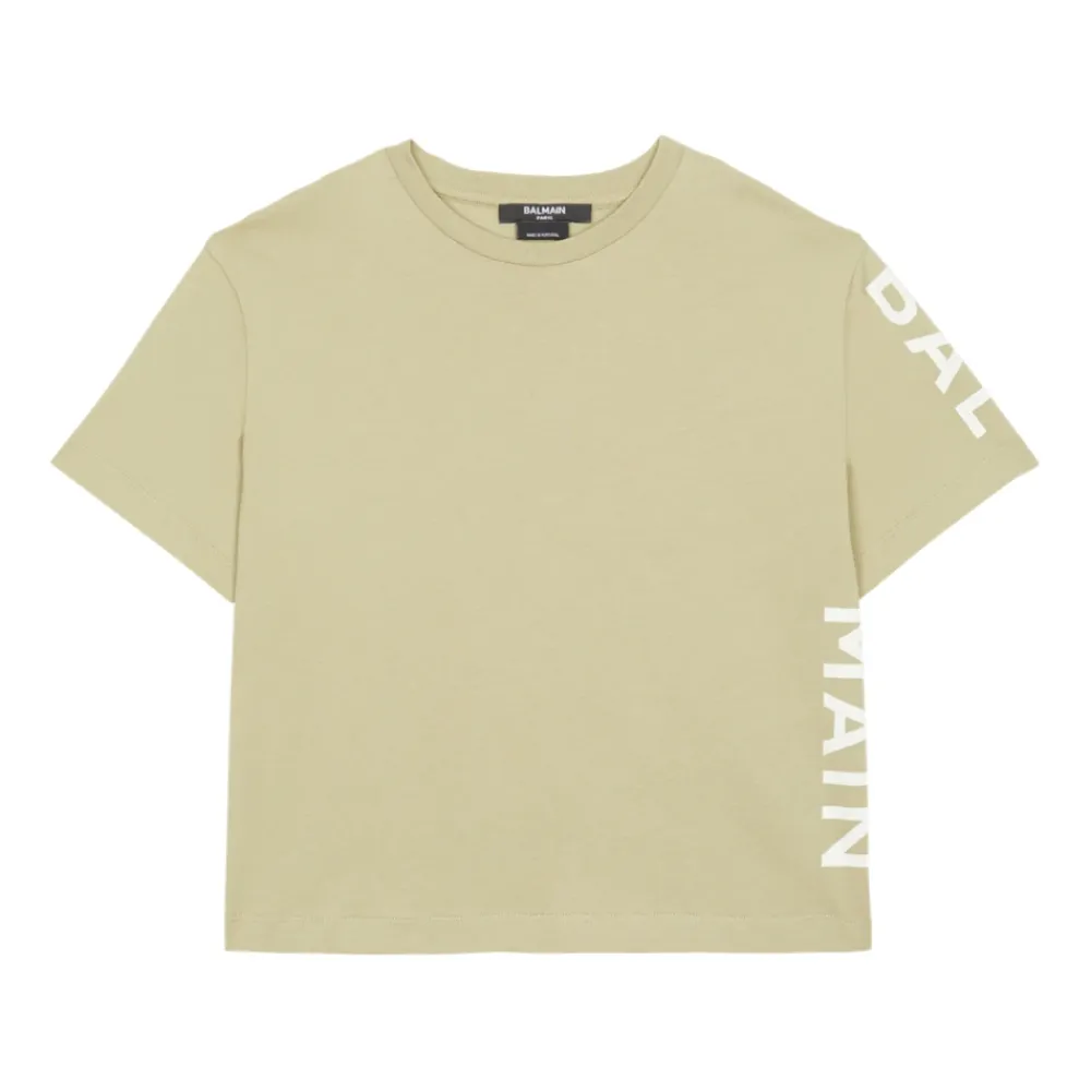Balmain T-Shirt Kontrastierender Balmain Logo-Print an der Seite Kurze Ärmel Rundhalsausschnitt mit Rippenbündchen Abschlüsse mit Doppelnaht Hauptmaterial: 100 % Baumwolle Hergestellt in Portugal Artikel: BT8P51Z0082
