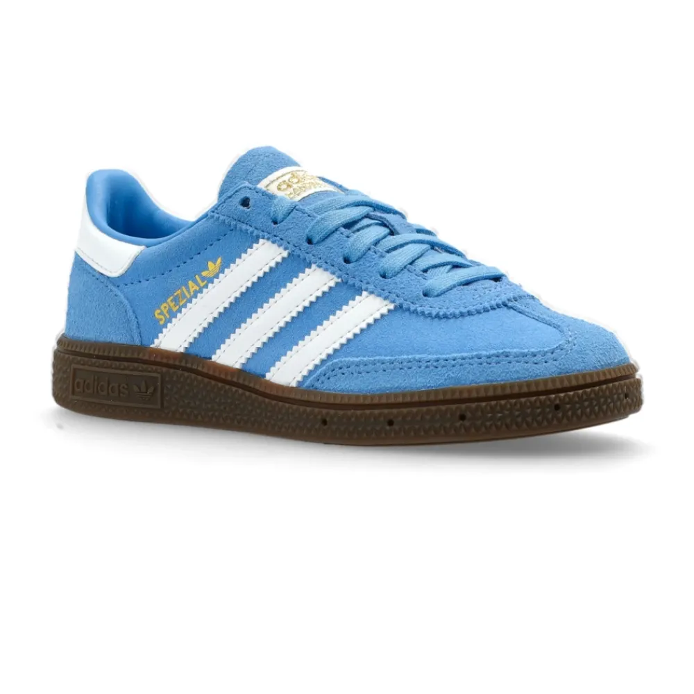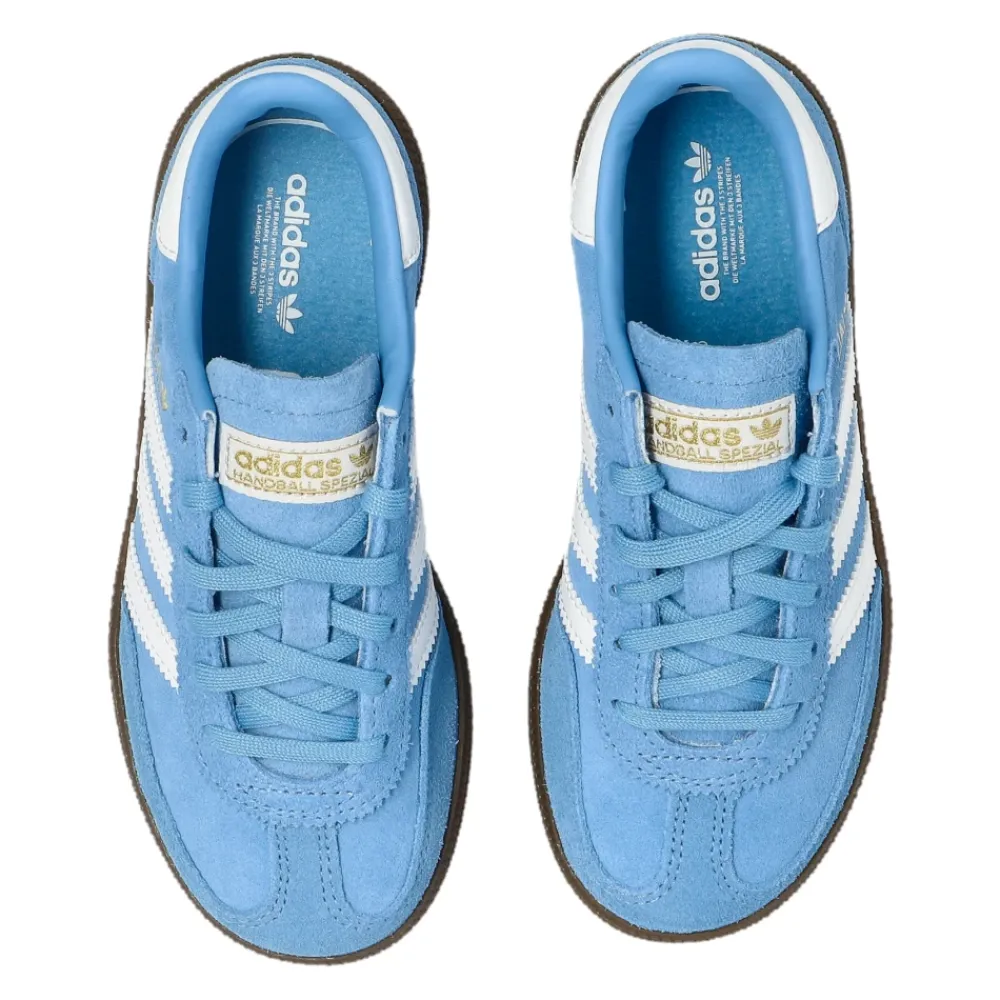 Der Adidas Handball Spezial C kombiniert eine Retro-Silhouette mit niedrigem Profil und einem markanten hellblauen Wildleder-Obermaterial. Die typischen drei weißen Streifen und ein goldener „SPEZIAL“-Schriftzug an der Seite verleihen dem Sneaker einen unverwechselbaren, klassischen Look. Hauptmerkmale: Hellblau | Cloud White | Gummi | Wildleder | Gummilaufsohle für Traktion und Stabilität | Leichte Sohle | Weiches Innenfutter | Verstärktes Fersendetail | Silhouette mit niedrigem Profil | Drei weiße, charakteristische Streifen | Goldener „SPEZIAL“-Schriftzug an der Seite | Weißes Fersendetail | Kräftige Nähte | Logo auf der Zunge | Maße & Passform: Sohlenhöhe am höchsten Punkt: 1,5 cm | Normale Passform | Materialzusammensetzung & Pflege: Wildleder (Obermaterial) | Gummi (Sohle) | Textil (Futter)