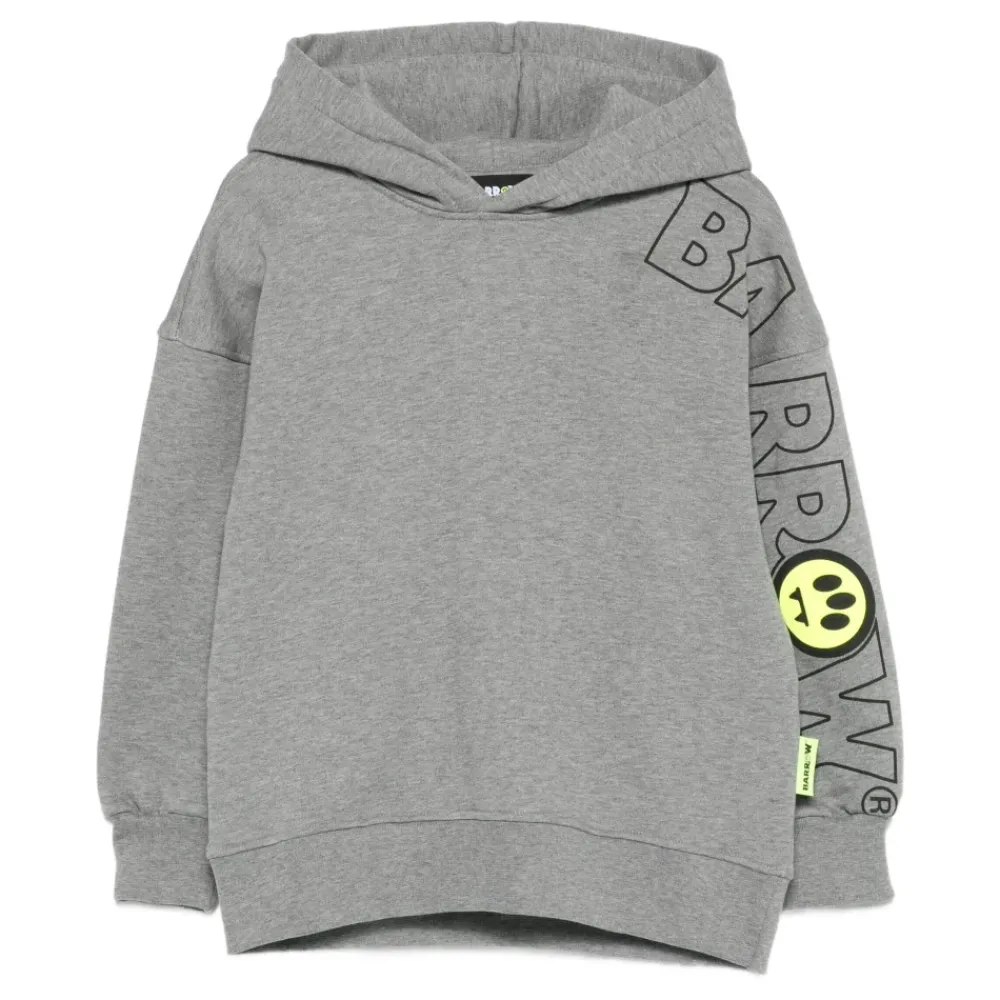 Der Barrow Hoodie Iconic ist ein Baumwollfleece-Hoodie, der auffällige Logo-Details mit einem weichen, bequemen Schnitt für alltägliche Streetwear kombiniert. Hauptmerkmale: Grau | Grigio melange scuro | Baumwolle | Weich gebürstete Innenseite | Kapuze | Kängurutasche vorne | Gerippte Bündchen | Maxi-Logo-Print auf Kapuze und Ärmel | Aufgestickter Smiley-Patch auf der Brust | Lange Ärmel | Gerader Saum | Maße & Passform: Reguläre Passform | Materialzusammensetzung & Pflege: 100% Baumwolle