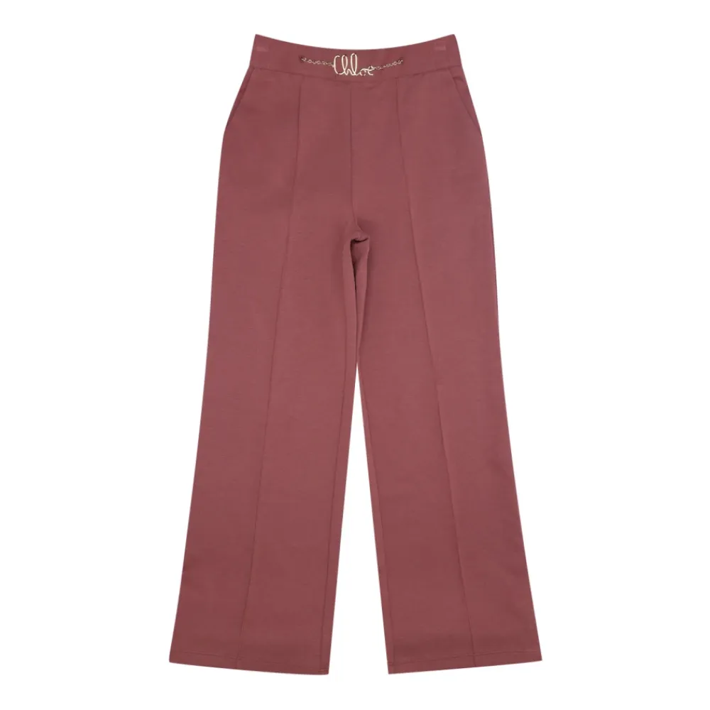 Die Chloé Hosen zeichnen sich durch ein Mailänder Stichmuster und raffinierte Metallic-Details für einen eleganten Alltagslook aus. Wichtige Merkmale: Rot | Weinrot | Baumwoll- und Modalmischung | Elastischer Bund mit goldfarbenem Kettenschriftzug | Seitliche Eingrifftaschen mit gravierten Knöpfen | Mailänder Stichmuster | Metallic-Logo-Details | Monogramm auf der Rückseite gestickt | Gerades Bein | Erhöhte Nähte entlang der Länge | Gerader Saum | Abmessungen & Passform: Normale Passform | Materialzusammensetzung & Pflege: Baumwoll- und Modalmischung