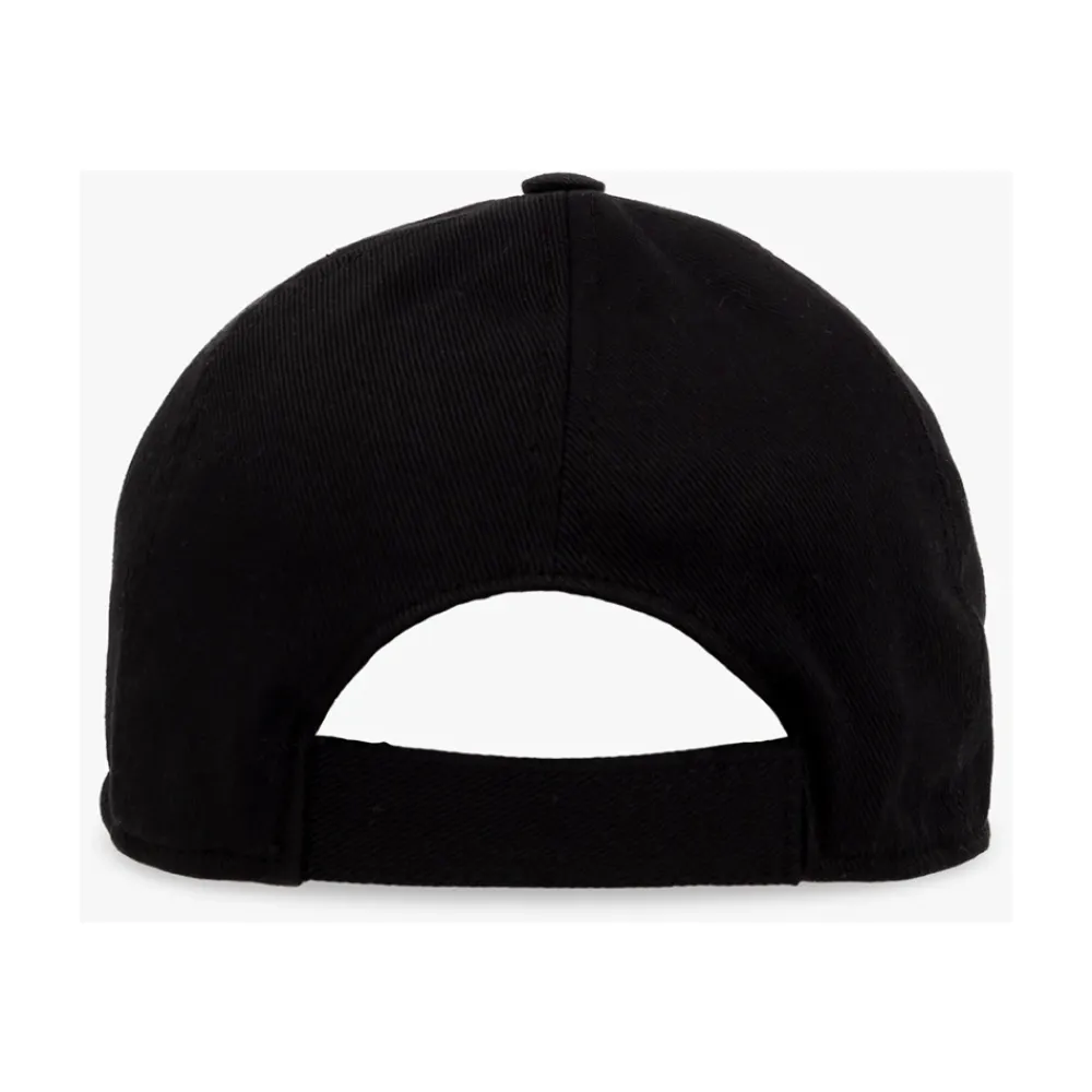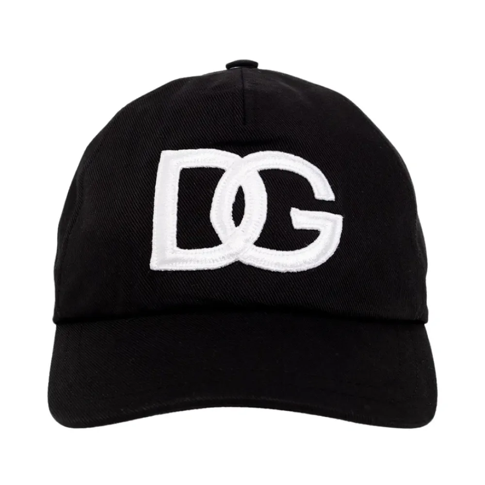 Schwarze Baseballkappe von Dolce Gabbana Kids. Dieses Design aus Baumwolle verfügt über einen verstellbaren Klettverschluss auf der Rückseite und ein weißes DG-Logo-Patch.