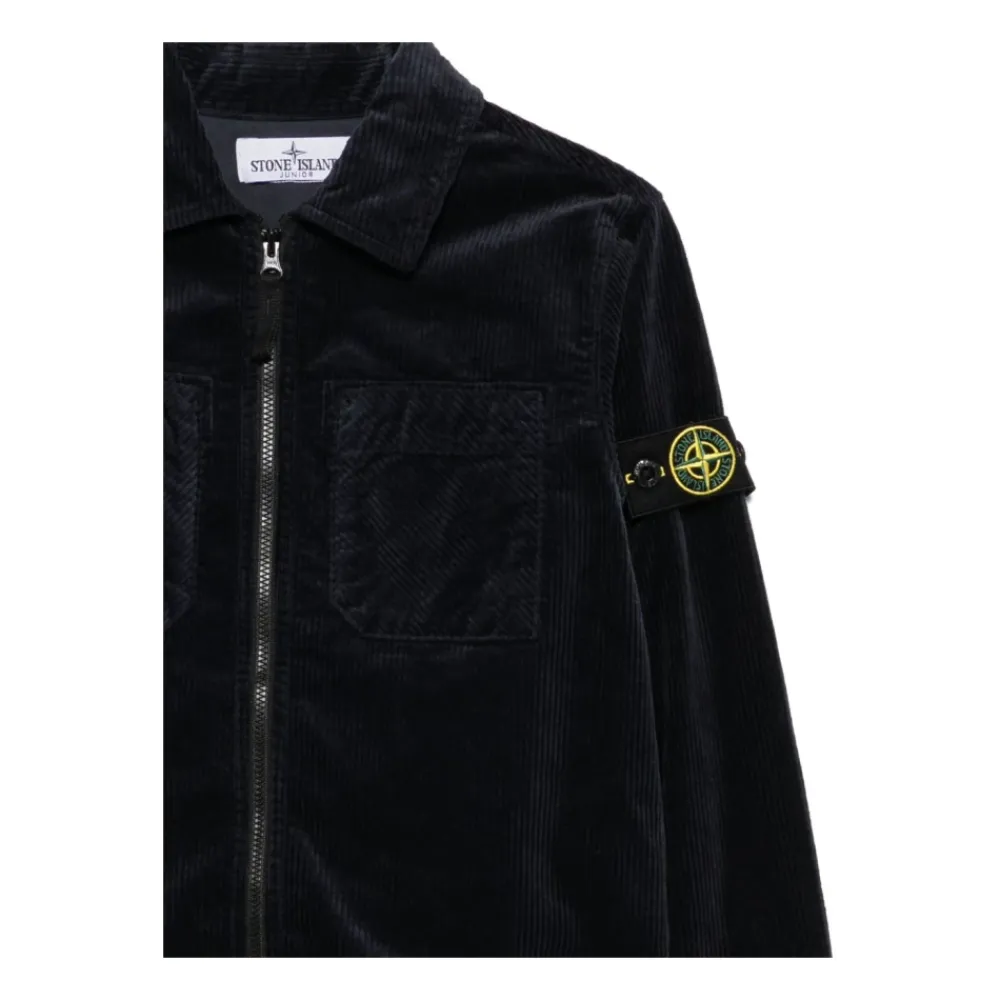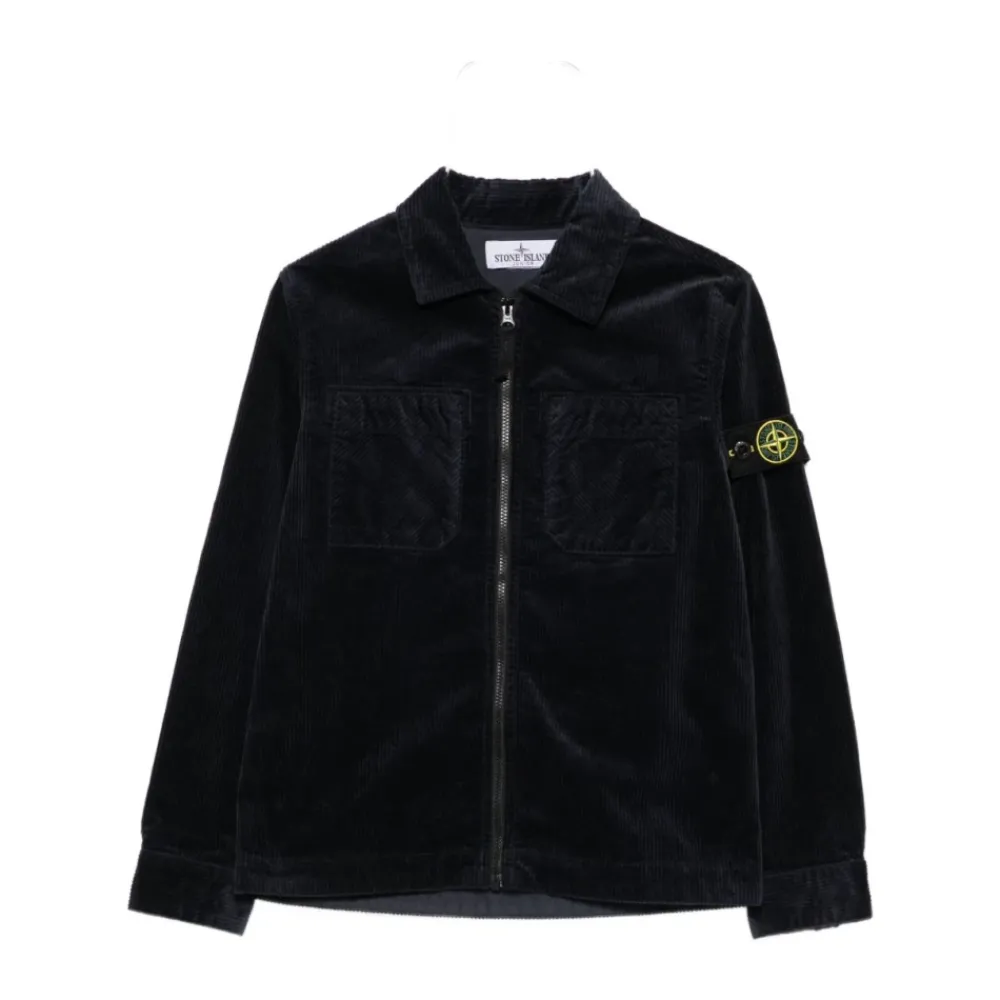 Stone Island Jacke mit einem Reißverschluss vorne und Rippstrickdetails, entworfen für das tägliche Tragen in Schichten und einfachen Komfort. Hauptmerkmale: Marineblau | Baumwolle | Reißverschluss vorne | Druckknopfmanschetten | Zwei aufgesetzte Brusttaschen | Gefütterte Innenseite | Spitzkragen | Lange Ärmel | Gerader Saum | Rippstrick | Logo-Badge auf dem linken Ärmel | Abmessungen & Passform: Normale Passform | Materialzusammensetzung & Pflege: 75% Baumwolle, 24% Lyocell, 1% Elasthan | Futter: 100% Baumwolle