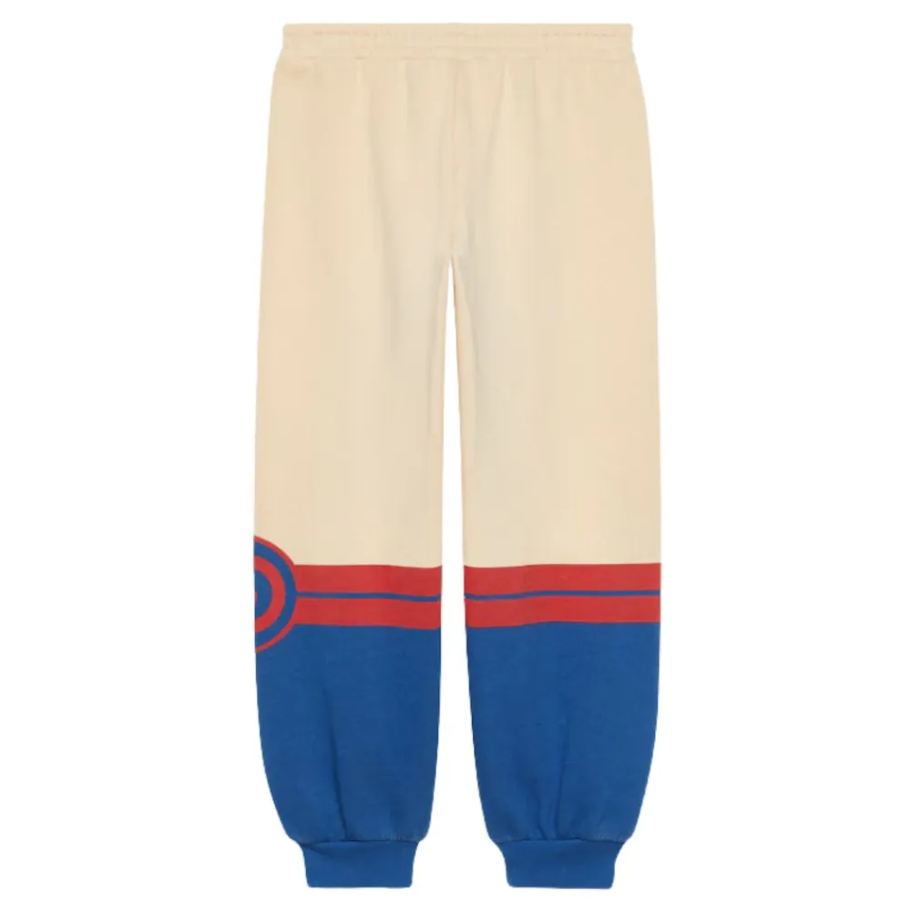 Gucci präsentiert die Jersey Cross GG Hose, eine stilvolle Ergänzung für Komfort und Flair. Diese Hose zeichnet sich durch einen markanten roten GG-Interlocking-Print auf einem blau/beigen Baumwolljersey-Untergrund aus. Wichtige Merkmale: Blau | Beige | Rot | Baumwolljersey | Schlupfstil | Elastischer Bund | Elastische Knöchel | Kontrastierender GG-Print | Maße und Passform: Normale Passform | Zusammensetzung und Pflege: 100% Baumwolle | Maschinenwäsche kalt, bei niedriger Temperatur im Trockner trocknen.