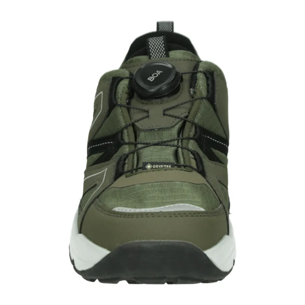 Entdecken Sie die Superfit 554 Jungen-Sneaker in Grün. Diese Schuhe bieten eine Weite 4 Passform, herausnehmbares Fußbett, Gummisohle und Obermaterial aus Kunststoff mit Goretex-Stoffdetails.
