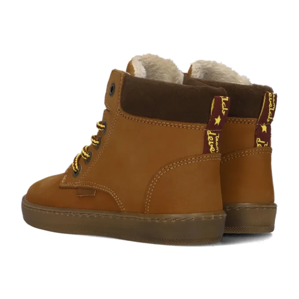 Lassen Sie Ihren kleinen Mann in Stil spielen mit diesen coolen cognacfarbenen Schnürstiefeln 45825 von der Marke DEVELAB. Hergestellt aus Nubukleder mit einem braunen Wildleder-Knöchelkragen und lustigen Akzenten, sind diese Schuhe perfekt für stundenlangen Spaß. Mit einem textilen Zuglasche am Schaft, braunen und gelben Schnürsenkeln, aufwendigen Nähten am Obermaterial und dem Markenlogo auf der Zunge, Seite und Ösen. Das Futter aus Kunstpelz und das weiche, herausnehmbare Textilfußbett sorgen für Komfort, während die Gummisohle mit robusten Nähten und einem griffigen Profil dafür sorgt, dass Ihr Kleiner leicht rennen und klettern kann.
