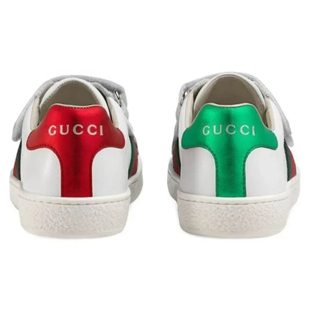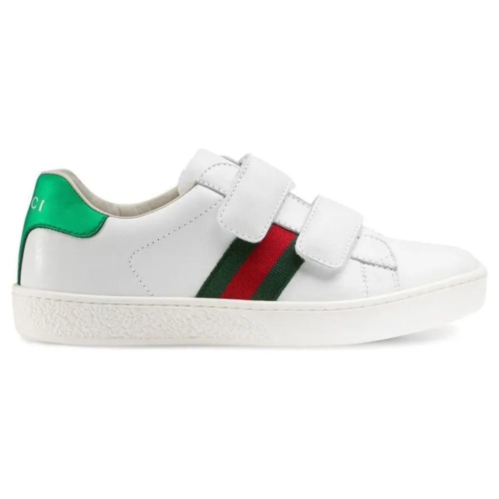 Die Gucci Junior New Ace Sneakers vereinen klassisches Sneaker-Design mit alltäglichem Komfort für vielseitiges Tragen. Das saubere weiße Finish macht sie einfach mit lässigen Outfits zu kombinieren. Hauptmerkmale: Weiß | Sneaker-Silhouette | Sauberes weißes Finish
