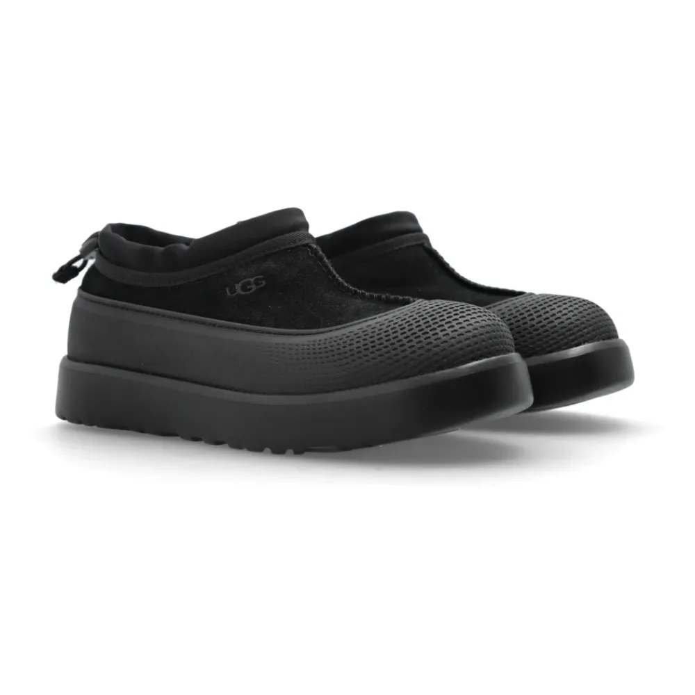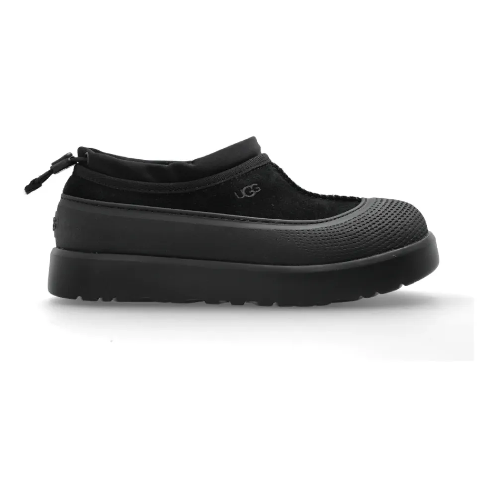 UGG K Tasman Weather Hybrid kombiniert eine abgerundete, niedrig geschnittene Silhouette mit einer dicken Sohle mit tiefem Profil für zuverlässigen, wetterfesten Tragekomfort. Das Design verbindet ein glattes Lederobermaterial mit einem plüschigen Futter aus Schafwolle, um Wärme und effektive Feuchtigkeitsregulierung bei Nässe zu gewährleisten. Hauptmerkmale: Schwarz | Leder | Wasserabweisende Konstruktion | Abriebfeste Verstärkung | Wärmeisolierung und Feuchtigkeitsmanagement | Verdickte Sohle mit tiefem Profil | Zugschlaufe mit Kordelzug für schnelles An- und Ausziehen | Nahtversiegelte Konstruktion | Abgerundete Silhouette | Niedriger Schaft | Gerippte Details vorne | Dezentes, kontrastierendes UGG-Logo | Abmessungen und Passform: Sohlenhöhe: 3 cm | Materialzusammensetzung und Pflege: Obermaterial: Wasserdichtes Wildleder (Leder) | Futter: 60 % Wolle, 40 % TENCEL Lyocell | Innensohle: 60 % Wolle, 40 % TENCEL Lyocell | Laufsohle: EVA | Elastische Schnürsenkel: 45 % Polyester, 55 % Latex
