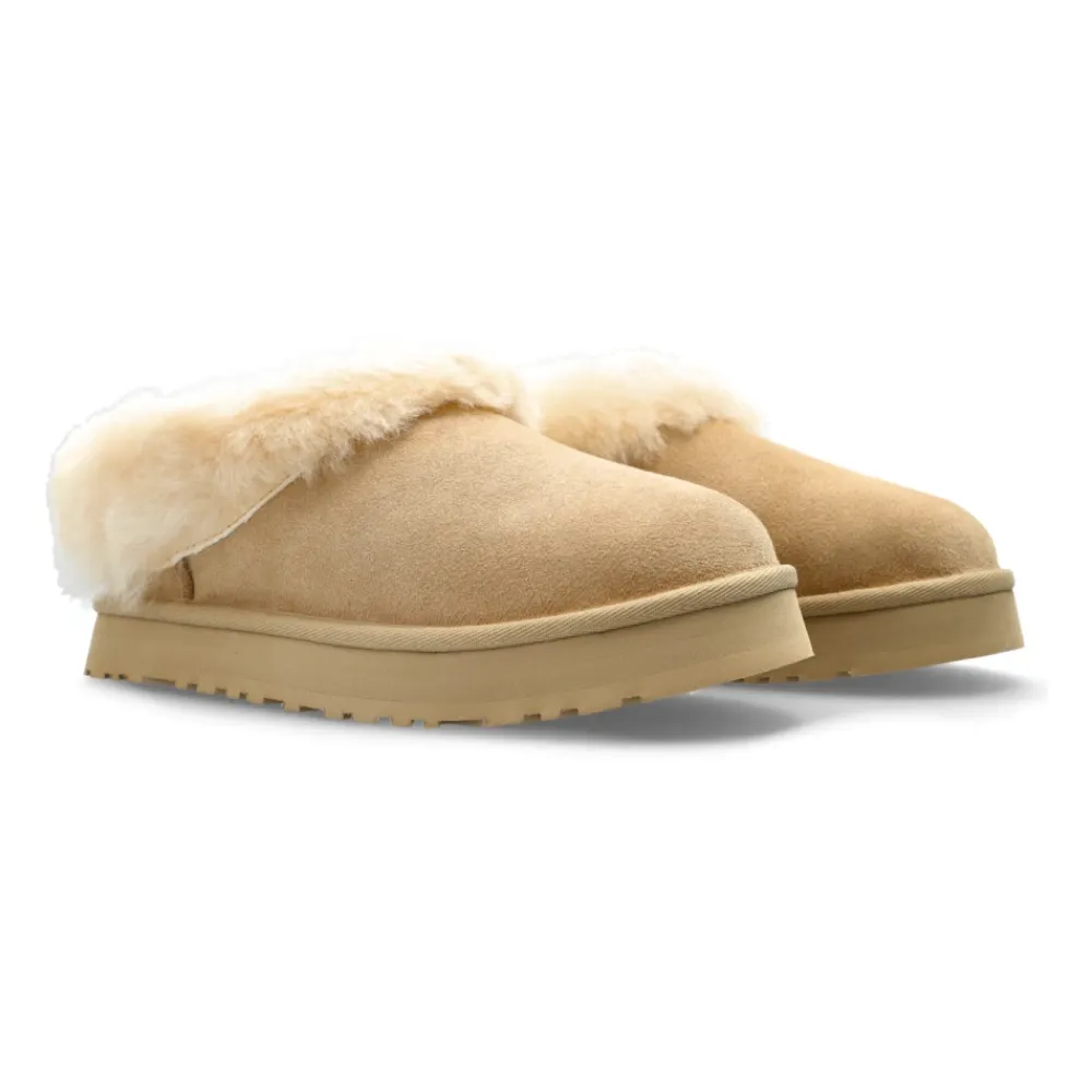 Die UGG K Tazzelle Schuhe verbinden plüschige Wärme von Schaffell mit einer leichten Plateausohle für einfachen Slip-On-Komfort und vielseitiges Tragen drinnen und draußen. Wichtige Merkmale: Beige | Wildleder | Warmes Schaffellfutter | Leichte Zuckerrohr-EVA-Sohle | Gepolsterte Plateausohle | Slip-On mit weiter Öffnung | Zuglasche hinten | Fixierter Schaft | Flauschiger Schaft | Low-Profile-Silhouette | Minimalistische Details | Maße & Passform: Sohlenhöhe: 2,5 cm | Zusammensetzung & Pflege: Obermaterial aus Wildleder | Schaffellfutter und -innensohle | Zuckerrohr-EVA-Zwischen-/Außensohle | Textileinfassung