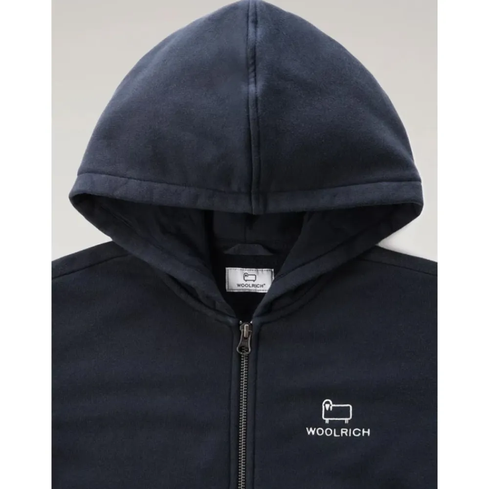 Das Woolrich Kapuzen-Sweatshirt mit durchgehendem Reißverschluss kombiniert eine warme Baumwollkonstruktion mit einem Logo auf der Vorderseite und einer Kängurutasche, entworfen für das tägliche Tragen bei kaltem Wetter. Hauptmerkmale: Blau | Blu | Baumwolle | Warm | Atmungsaktives Gewebe | Kapuze | Durchgehender Reißverschluss | Kängurutasche | Lange Ärmel | Gesticktes Logo auf der Vorderseite | Gerippte Bündchen und Saum | Uni-Farbenes Design | Zusammensetzung und Pflege: 100% Baumwolle | Maschinenwäsche bei 30°C. Nicht bügeln. Nicht mit hellen Farben waschen. Keine Bleichmittel verwenden.