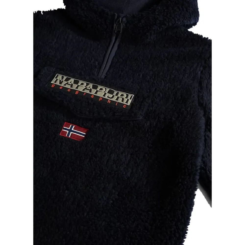 Napapijri Fleecejacke mit Kapuze und halbem Reißverschluss, konzipiert für das Tragen in mehreren Schichten bei kaltem Wetter, mit einer Kängurutasche mit Reißverschluss und einem verstellbaren Saum. Hauptmerkmale: Blau | Blu | Polyester | Geeignet für den Winter | Bietet Wärme | Halber Reißverschluss | Feste Kapuze | Kängurutasche mit Reißverschluss | Verstellbarer Saum mit elastischen Abschlüssen | Kapuzen-Ausschnitt | Halber Reißverschluss vorne | Kängurutasche mit Reißverschluss | Elastische Abschlüsse | Zusammensetzung & Pflege: 100% Polyester | Maschinenwäsche bei 30°C. Nicht bügeln. Nicht mit hellen Farben waschen. Keine Bleichmittel verwenden.