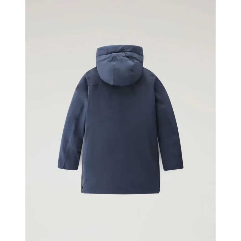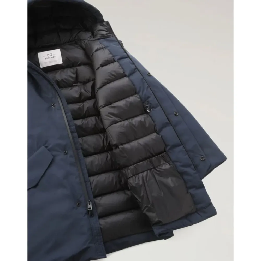 Woolrich langer Parka, gefertigt für kalte Winterbedingungen, mit Daunenisolierung und einem hohen Stehkragen mit Kapuze für zusätzlichen Schutz. Hauptmerkmale: Blau | Blu | Polyester | Isoliert mit Daunenfüllung | Geeignet für winterliche Klimazonen | Verdeckter zentraler Reißverschluss | Brusttasche mit Reißverschluss | Zwei Taillen-Pattentaschen | Hoher Stehkragen | Lange Parka-Silhouette | Mit Kapuze | Zusammensetzung & Pflege: 100% Polyester | 100% Polyamid | 90% Graue Entendaunen, 10% Feder | Maschinenwäsche bei 30°C; nicht bügeln; nicht mit hellen Farben waschen; keine Bleichmittel verwenden.