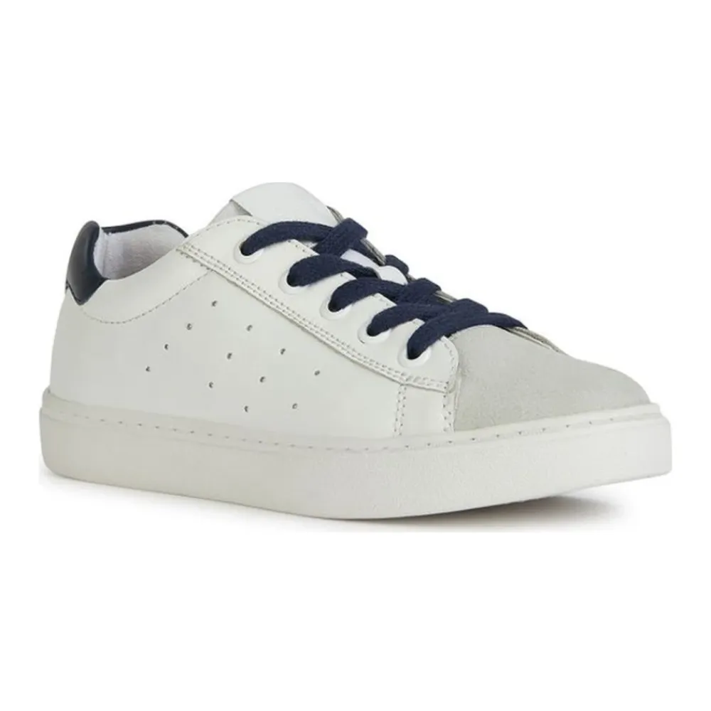 Kaufen Sie die Geox Jungen Weiße Sneakers für Kinder. Hergestellt aus einer Mischung aus Rindsleder, Wildleder und Baumwolle, sind diese Sneakers stilvoll und bequem. Produktcode: J45ECA 08522 C0899.
