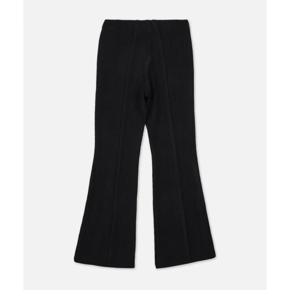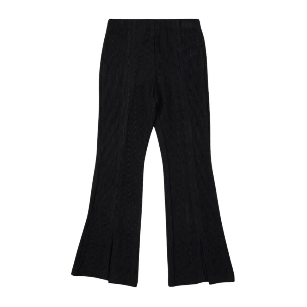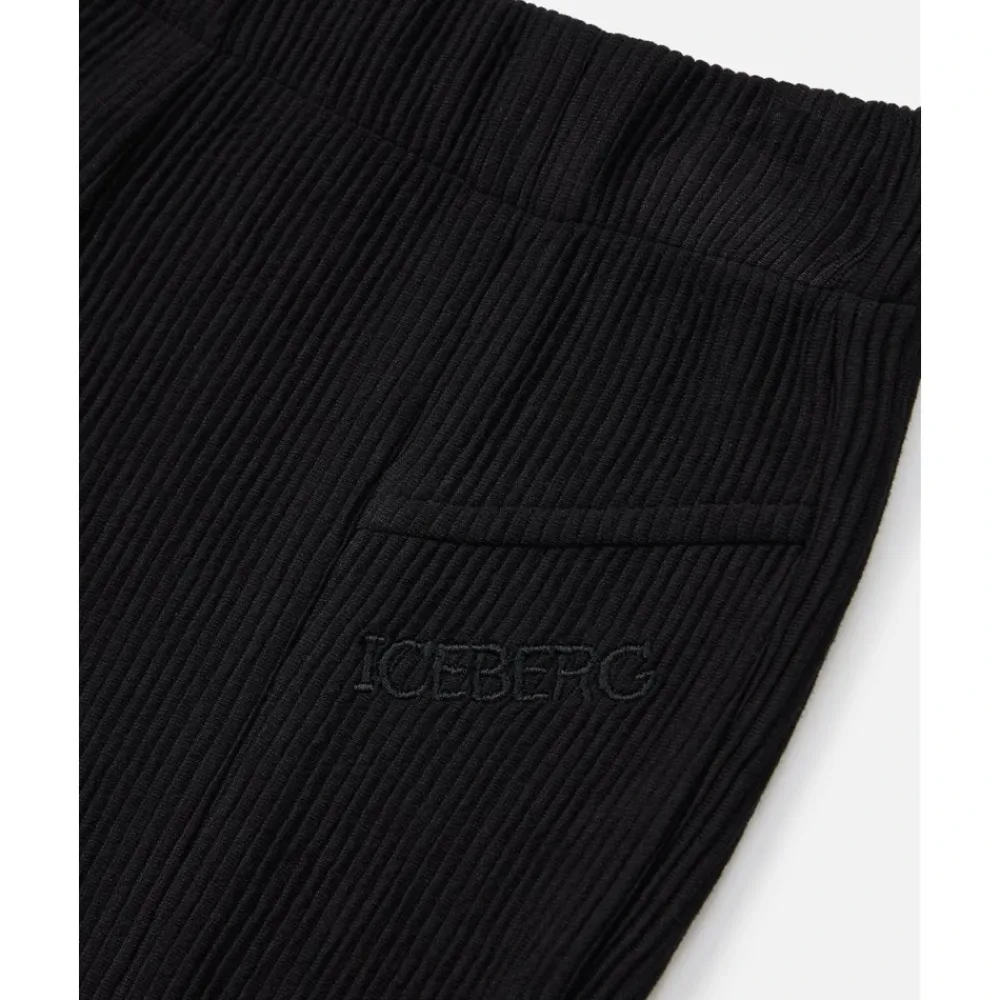 Mit ihrer niedrigen Taille und ausgestellten Beinen rufen diese schwarzen Iceberg Junior-Hosen eine zeitgenössische Y2K-Stimmung hervor. Die ausgestellte Silhouette schlankt die Figur ab, während das intensive Schwarz sie zu einem vielseitigen Verbündeten für kühne Looks macht.