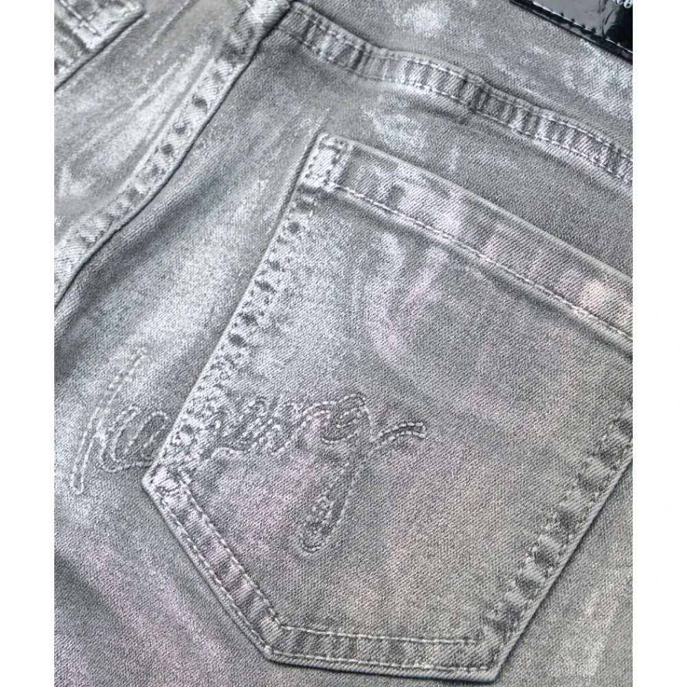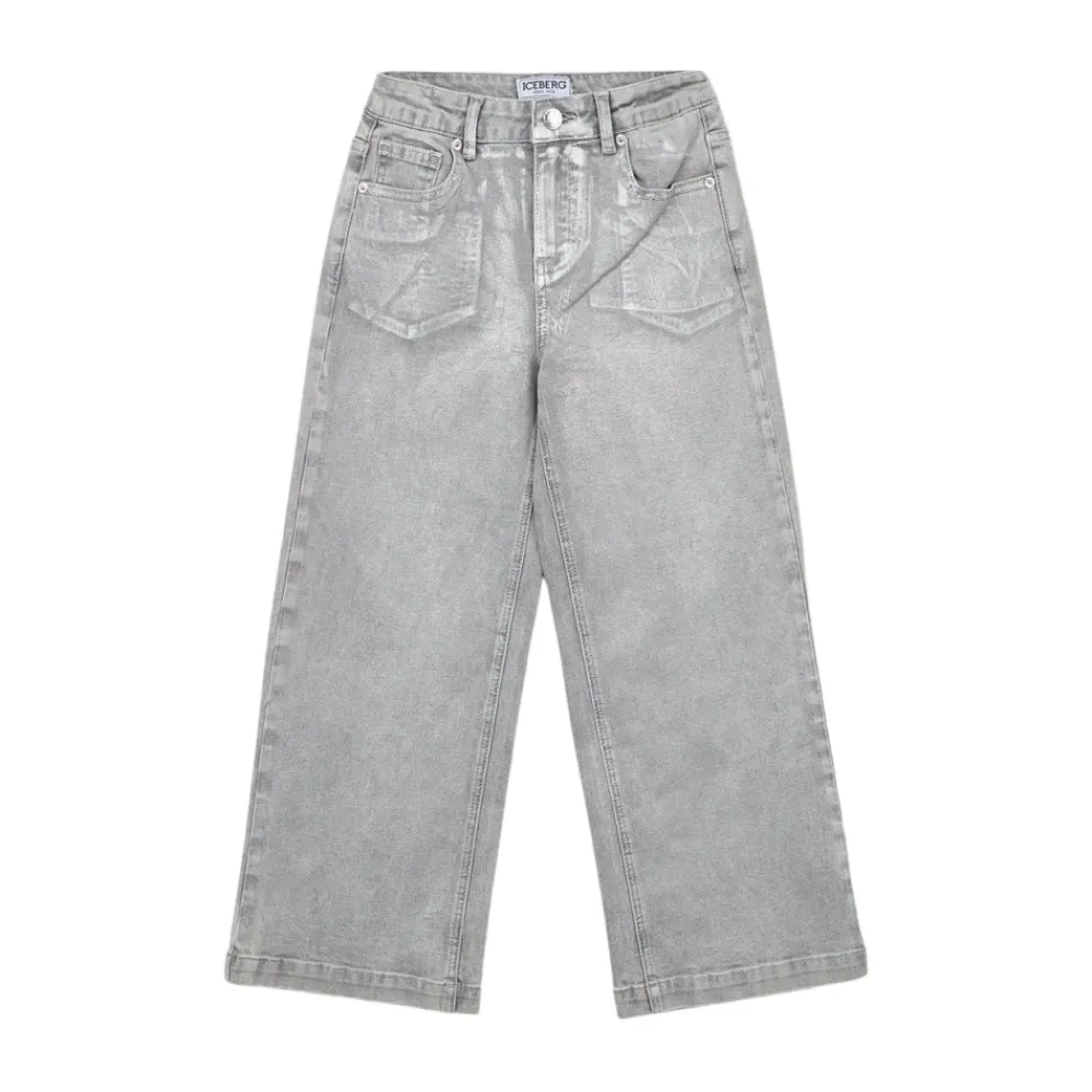 Diese Jeans mit fünf Taschen haben ein weites Bein und einen hellgrauen Farbton, was einen frischen und zeitgemäßen Look schafft. Dieser Stil kombiniert Komfort und Stil, perfekt für diejenigen, die ein vielseitiges Kleidungsstück suchen, das leicht mit lässigen oder eleganteren Outfits kombiniert werden kann und dabei eine lässige Eleganz bewahrt.