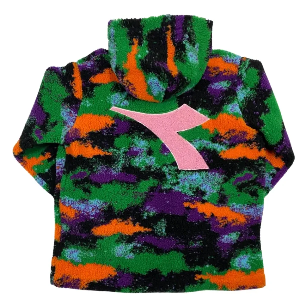 Bleiben Sie warm und stilvoll in dieser mehrfarbigen Diadora Kids Fleecejacke, hergestellt aus Sherpa-Stoff. Mit Kapuze, langen Ärmeln, zentralem Reißverschluss, Logo auf beiden Seiten, zwei Seitentaschen, geradem Saum und regulärer Passform. Hergestellt in Italien aus 53% Acryl und 47% Polyester.