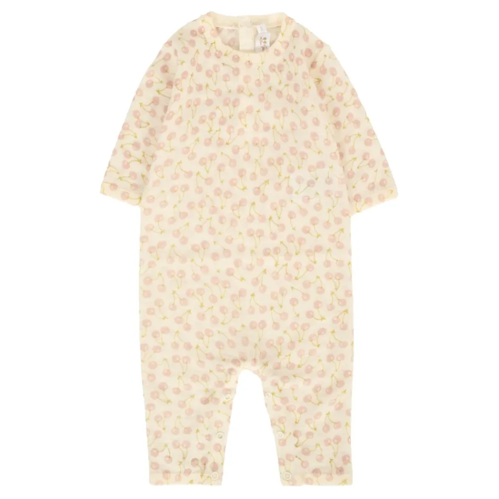 Kleiden Sie Ihr Kleines stilvoll in diesem Bonpoint Elfenbein-Overall aus Merinowolle. Mit langen Ärmeln, geripptem Ausschnitt und Saum, Knopfverschluss auf der Rückseite und zwischen den Beinen sowie all-over rosa Kirschverzierung. Aus 100% Wolle gefertigt. Nur Handwäsche.