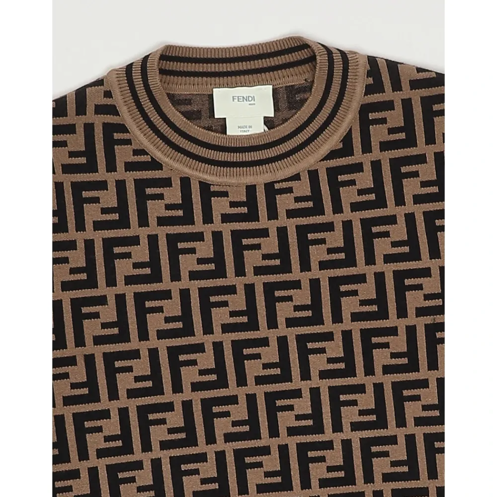 Das Fendi Knit Top kombiniert ein raffiniertes FF-Motiv mit gerippten Abschlüssen für eine elegante, figurbetonte Strickoption, die ideal für gehobene Alltagslooks ist. Hauptmerkmale: Braun | Marrone Nero | Viskose | Runder Ausschnitt | Kurze Ärmel | Gerippte Kanten | FF-Motiv | Gerader Saum | Maße und Passform: Figurbetont | Cropped-Passform | Materialzusammensetzung und Pflege: 67% Viskose | 33% Polyester