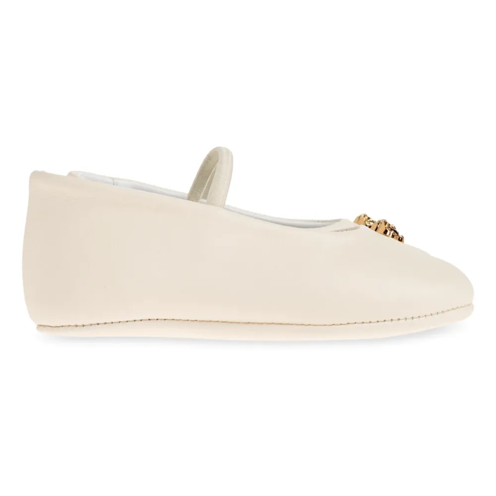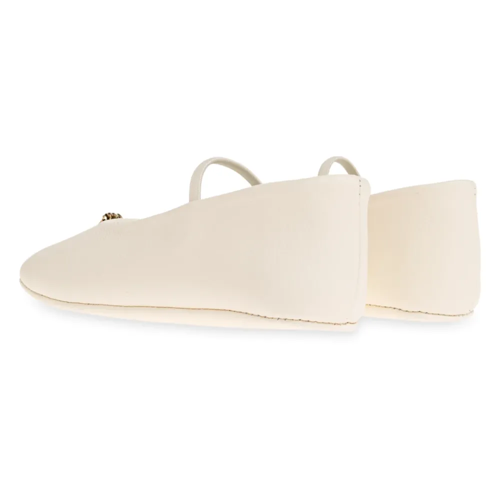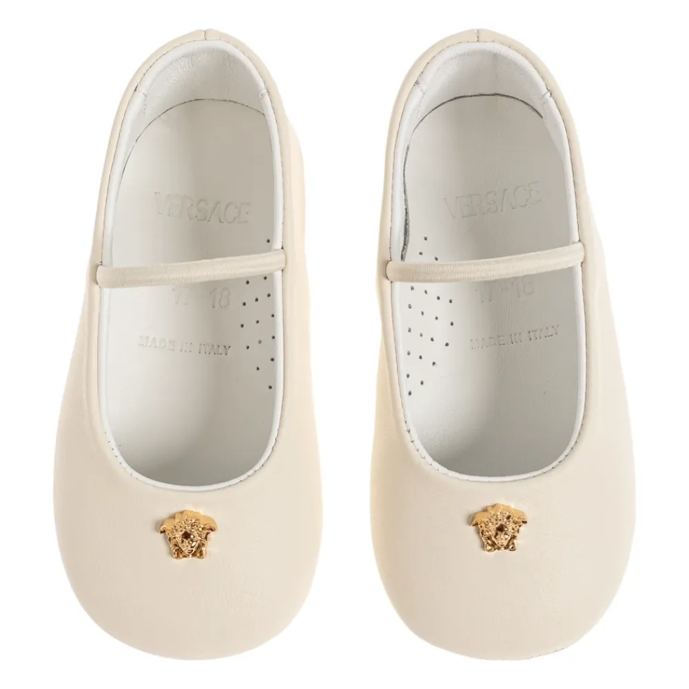 Versace Leather Ballerinas sind elegante Ballerinas aus geschmeidigem, cremefarbenem Leder, die mit einem goldenen Medusa-Kopf als dezenter Luxusakzent versehen sind. Die abgerundete Zehenpartie und der einzelne Riemen über dem Spann sorgen für einen zeitlosen Look mit zusätzlicher Stabilität und Komfort. Hauptmerkmale: Beige | Creme | Leder | Angenehmer Tragekomfort | Erhöhte Stabilität | Einzelner Riemen über dem Spann für zusätzlichen Halt | Weiches Lederfutter für Komfort | Abgerundete Zehenpartie | Minimalistische Silhouette | Goldener Medusa-Kopf-Detail | Geprägtes Markenlogo auf der Innensohle | Zusammensetzung & Pflege: Leder (Obermaterial) | Leder (Futter) | Mit einem weichen, feuchten Tuch abwischen; befolge die Anweisungen auf dem Produktetikett oder der Pflegeanleitung der Marke für vollständige Anweisungen.