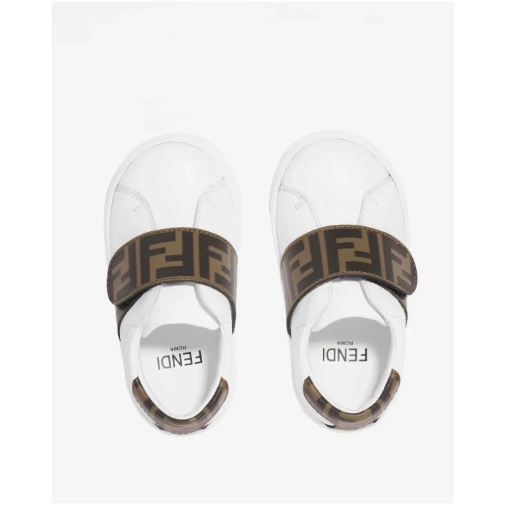 Verbessere deinen Style mit diesen eleganten Leather FF Logo Sneakern von Fendi. Sie wurden in Italien aus hochwertigem, weißem Nappaleder gefertigt und bieten ein luxuriöses Finish. Wichtige Merkmale: Weiß | Nappaleder | Übergroßer Klettverschluss | Iconisches Tobacco Brown FF Muster | Gummisohle | Zusammensetzung und Pflege: 100% Kalbsleder | Mit einem feuchten Tuch reinigen.