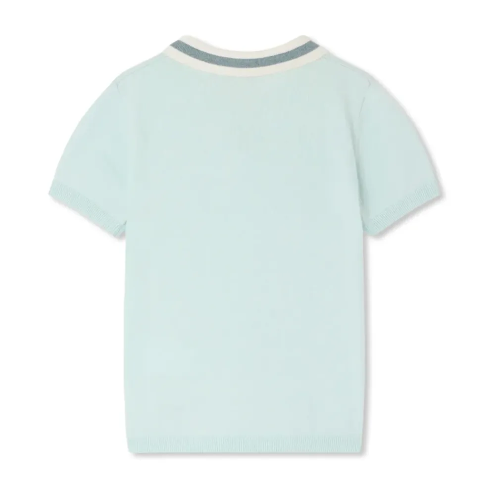 Das Bonpoint Loyal Polo Shirt vereint zeitlosen französischen Stil mit einem weichen Baumwollstrick und bietet ein raffiniertes Finish und angenehmen Tragekomfort für jeden Tag. Hauptmerkmale: Hellblau | Blau | Baumwolle | Weicher Strick | Atmungsaktives Material | Zwei-Knopf-Verschluss | Polokragen mit doppelten weißen und blauen Streifen | Kurze Ärmel | Gerippte Abschlüsse | Dekorativer Streifenkragen | Sportliche Akzente | Abmessungen & Passform: Klassischer Schnitt | Zusammensetzung & Pflege: 100% Baumwolle