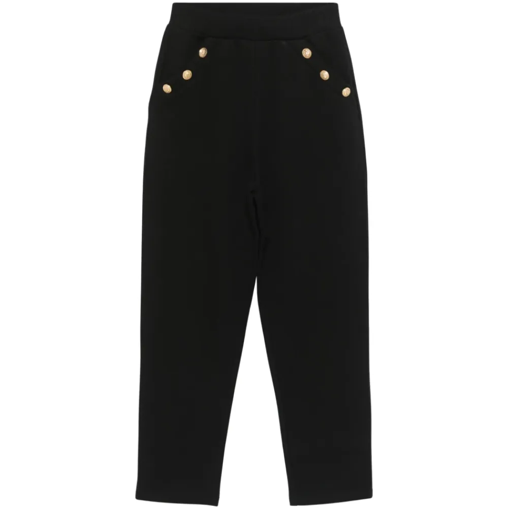 Heben Sie ihren Stil in dieser Saison mit den exquisiten Balmain Girls Logo Button Joggers in Schwarz auf ein neues Niveau – eine unverzichtbare Ergänzung für ihre Garderobe SS2025. Hergestellt mit makelloser Aufmerksamkeit für Details, verbinden diese Joggers Luxus mit lässiger Eleganz. Verziert mit ikonischen Balmain-Knöpfen und aus hochwertigem Stoff gefertigt, garantieren diese Joggers Langlebigkeit und Komfort. Die vielseitige schwarze Farbe macht sie perfekt für zahlreiche Anlässe und ergänzt mühelos andere Garderoben-Basics. Ideal für modische junge Trendsetter.