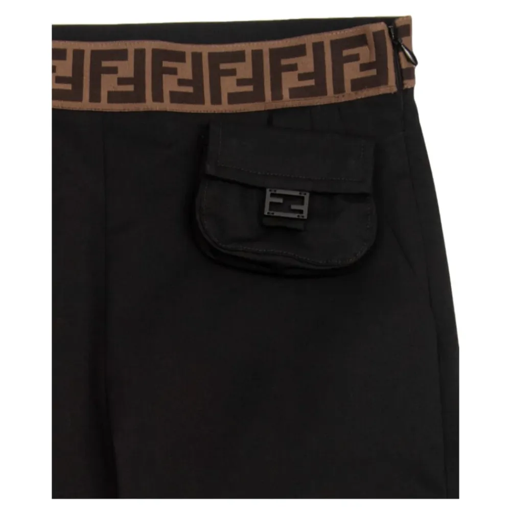 Die Fendi Manero Hose vereint einen klaren Schnitt mit einer Mini-Baguette-Applikation an der Taille, die durch das ikonische FF-Motiv in kontrastierendem Braun für ein charakteristisches Finish akzentuiert wird. Hauptmerkmale: Schwarz | Nera | Baumwolle | Seitlicher Reißverschluss | Seitliche Paspeltaschen | Mini-Baguette-Applikation an der Taille | Kontrastierendes FF-Motiv an der Taille | Zusammensetzung und Pflege: 97 % Baumwolle | 3 % Elastan
