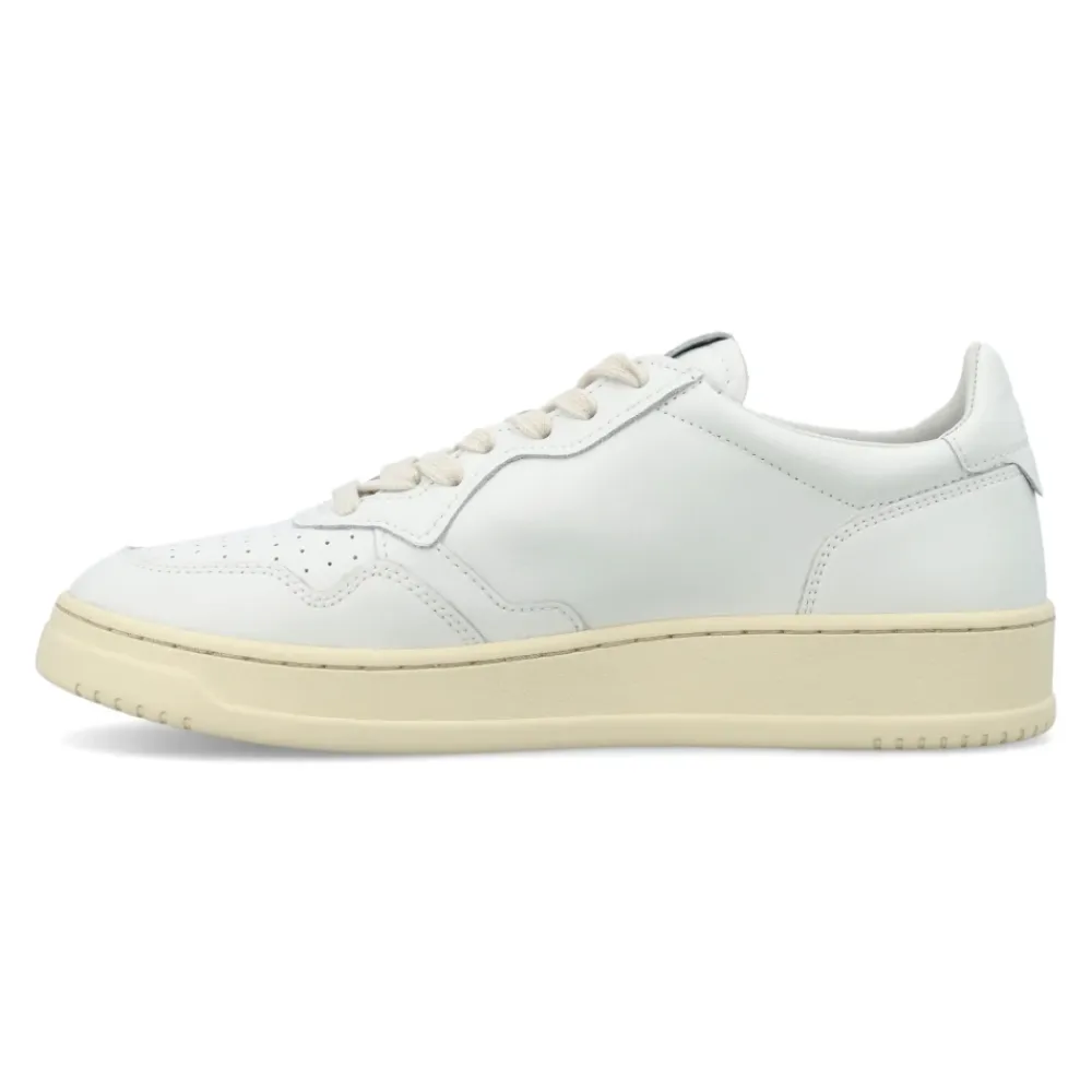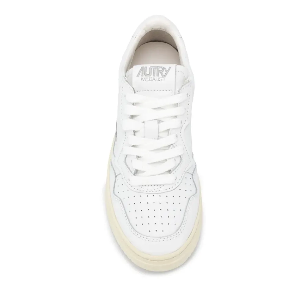 Upgrade deine Sneaker-Sammlung mit diesen weißen Autry Medalist Low-Top-Sneakers für Männer. Hergestellt aus Leder mit abgesteppten Mehrschicht-Details, verfügen diese Sneakers über flache Baumwollschnürsenkel, gepolsterten Knöchel, runde und perforierte Zehenkappe, Gummisohle, gepolsterte Zunge, Leder- und Baumwollfutter sowie das Logo der Marke an der Seite und Zunge. Sockliner-Höhe: 2 cm; Sohlenhöhe: 2.5 – 3.5 cm.