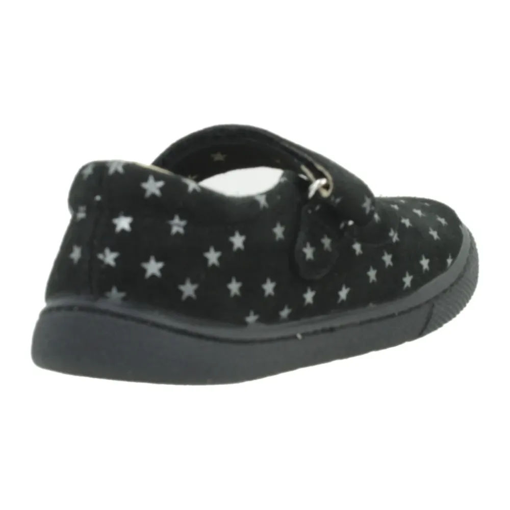 Vulladi Merceditas Schuhe kombinieren eine leichte, flexible Konstruktion mit einem markanten weißen Sternenmuster auf schwarzem Obermaterial, ideal für den täglichen Gebrauch. Modellbezeichnung: „Merceditas“ (Designercode 6191 259). Hauptmerkmale: Schwarz | Leichte Konstruktion | Flexible Sohle/Obermaterial für natürliche Bewegung | Bequem für den täglichen Gebrauch | Verstellbarer Klettverschluss für einfaches An- und Ausziehen | Einfaches An- und Ausziehen | Weißer Sternenprint auf schwarzem Obermaterial | Verspieltes, modernes Detail