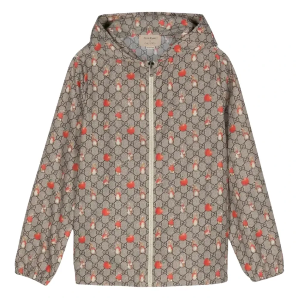 Verleihen Sie Ihrem Stil mit der Gucci Beige Monogramm Peter Rabbit Hoodie Jacke einen Hauch von Eleganz. Sie zeichnet sich durch ein verspieltes Monogrammmuster und einen kontrastierenden Peter Rabbit™-Print aus. Dieses Kapuzendesign bietet sowohl Mode als auch Funktion mit seinen zwei Einschubtaschen und elastischen Abschlüssen. Wichtige Merkmale: Beige | 100% Polyamid | Kapuzendesign | Zwei Einschubtaschen | Elastische Abschlüsse | Monogrammmuster | Kontrastierender Peter Rabbit™-Print | Zusammensetzung und Pflege: 100% Polyamid | Nicht spezifiziert