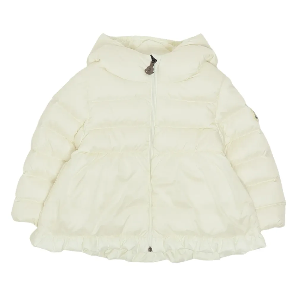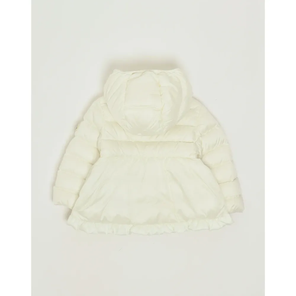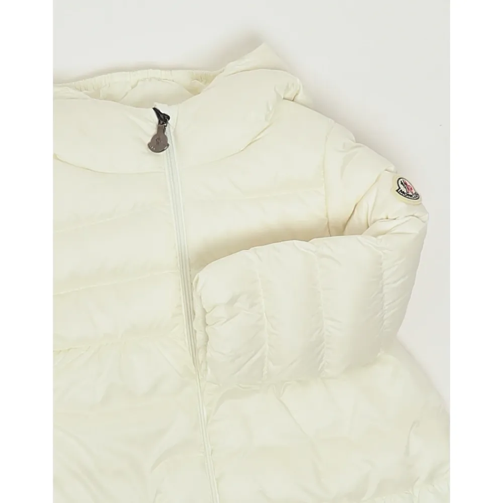 Die Moncler Odile Daunenjacke mit Kapuze bietet eine leichte Daunenisolierung in einer verspielten A-Linien-Silhouette, ideal, um an kühlen Tagen warm zu bleiben. Das Kapuzendesign und der praktische Verschluss machen sie zu einer vielseitigen, alltagstauglichen Außenschicht. Hauptmerkmale: Hellrosa | Polyamid | Wasserabweisend | Daunenisolierung | Wärme | Kapuze | Reißverschluss | Elastische Bündchen | A-Linien-Silhouette | Rüschensaum | Kapuzendesign | Zusammensetzung & Pflege: Außenmaterial: 100 % Polyamid (Nylon) | Futter: 100 % Polyamid (Nylon) | Kapuzenfutter: 100 % Polyamid (Nylon) | Füllung: 90 % Daunen, 10 % Federn | Details Füllung: 100 % Polyester | Handwäsche. Nicht bleichen. Nicht im Wäschetrockner trocknen. Bügeln maximal 110°C ohne Dampf. Nicht chemisch reinigen. Nicht professionell nass reinigen. Liegend im Schatten trocknen.