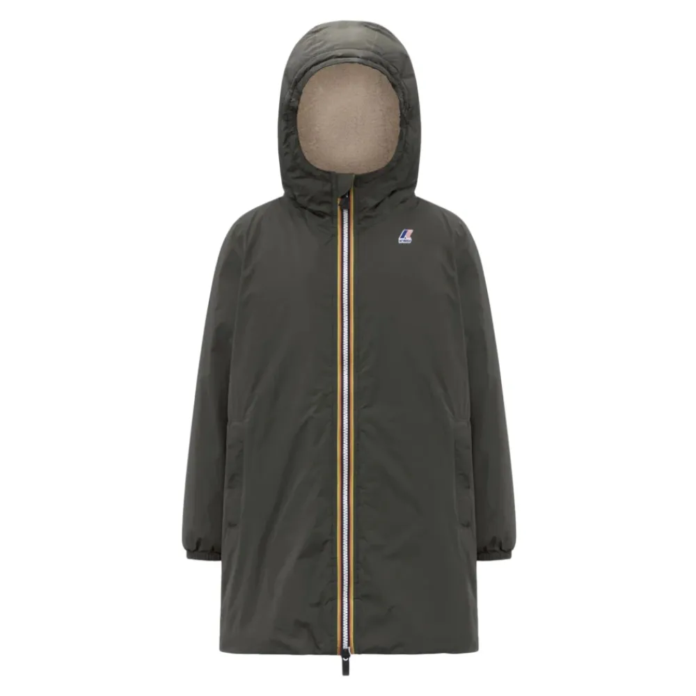 Die K-WAY P. Le Vrai 4.0 Eiffel Orsetto Jacke kombiniert wasserdichten Ripstop-Schutz mit einem weichen Futter im Sherpa-Look und einer leichten PrimaLoft-Isolierung für bequemen Tragekomfort von der Übergangszeit bis zum frühen Winter. Hauptmerkmale: Grün Schwarz | Ripstop-Nylon | Wasserdicht (10.000 mm Wassersäule) | Winddicht | Atmungsaktiv (10.000 g/m²/24h) | DWR-Beschichtung | Wärmeverklebte Nähte | Mittlerer Wärmegrad | Elastische Kapuze | Reißverschluss mit interner Windschutzleiste | Elastische Bündchen | Zwei Reißverschlusstaschen | Leichte PrimaLoft-Isolierung | Sherpa-Innenfutter | Mittellange Silhouette | Typisches farbenfrohes K-WAY-Logo | Ripstop-Textur | Abmessungen & Passform: Normale Passform | Mittellang | Materialzusammensetzung & Pflege: Obermaterial: 100 % Nylon | Futter: 100 % Polyester | Wattierung: 100 % Polyester | Schonwaschgang max. 30 °C; Nicht bleichen; Nicht im Wäschetrockner trocknen; Nicht bügeln; Nicht chemisch reinigen; Separat waschen; Accessoires beim Waschen schützen.