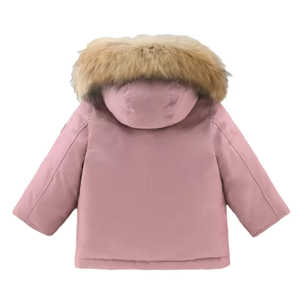 Woolrich Parka Daunenjacke, entworfen für kaltes, windiges Wetter, kombiniert Entendaunen-Isolierung mit einer winddichten, wasserabweisenden Außenschicht. Die Kapuze verfügt über einen abnehmbaren Kaschmir-Einsatz für zusätzlichen Komfort und eine edle Note. Hauptmerkmale: Pink | Rosa | Baumwolle | Winddicht | Wasserabweisend | Wärmeisolierung (Entendaunen-Füllung) | Abnehmbarer Kaschmir-Kapuzeneinsatz | Druckknopf- und Reißverschluss | Vier Vordertaschen zur Aufbewahrung | Gerippte elastische Ärmelbündchen zur Wärmespeicherung | Kapuzendesign mit abnehmbarem Einsatz | Logo-Patch auf dem Ärmel | Vier Vordertaschen | Zusammensetzung & Pflege: Obermaterial: 60% Baumwolle, 40% Polyamid | Futter: 100% Polyamid | Füllung: 70% graue Entendaunen, 30% Federn | Pelzbesatz: 100% Waschbärfin | Beachten Sie die Waschanleitung auf dem Etikett im Inneren des Kleidungsstücks.