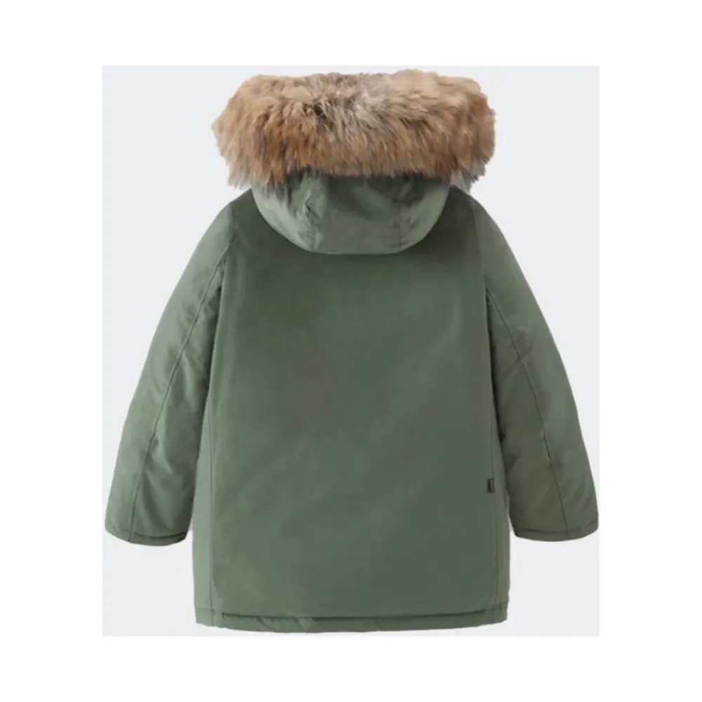 Bleiben Sie warm und stilvoll in dieser Woolrich Kinder Winterjacke. Hergestellt aus Ramar-Stoff und mit Teflon-Beschichtung, ist dieses Parka-Modell wasser- und windabweisend. Gefüllt mit Entendaunen und mit abnehmbarer Pelzkapuze ist diese Jacke perfekt für den Winter. Pflegehinweise: Maschinenwäsche bei 30°C, nicht bügeln, nicht mit hellen Farben waschen, nicht bleichen. Hergestellt in China. Zusammensetzung: 60% Baumwolle, 40% Polyamid, 100% Polyamid, 70% Graue Entendaunen, 30% Feder, 100% Waschbär Pelz.
