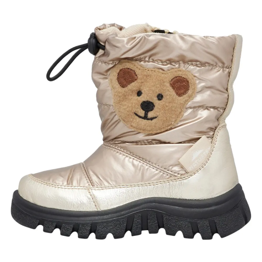 Falcotto POZNURR BEAR 2 WP ist ein gefütterter Stiefel, der für kalte, rutschige Bedingungen entwickelt wurde. Er kombiniert ein Obermaterial aus Leder und technischem Gewebe mit einem Teddy-Seitenpatch für zusätzlichen Stil. Sein wasserdichtes Obermaterial und die rutschfeste Sohle machen ihn für das Spielen im Freien in nassem oder verschneitem Gelände geeignet. Hauptmerkmale: Gelb | Gold | Leder und technisches Gewebe | Wasserdichtes Obermaterial | Rutschfeste Sohle | Gepolsterte Isolierung | Innenliegender Reißverschluss für einfaches An- und Ausziehen | Waden-Kordelzugverschluss | Strukturierte, rutschfeste Sohle | Teddy-Patch an der Seite | Gepolsterte Silhouette | Waden-Kordelzugdetail | Zusammensetzung & Pflege: Leder | Technisches Gewebe | Gummi (Außensohle) | Wolle (Innensohle)