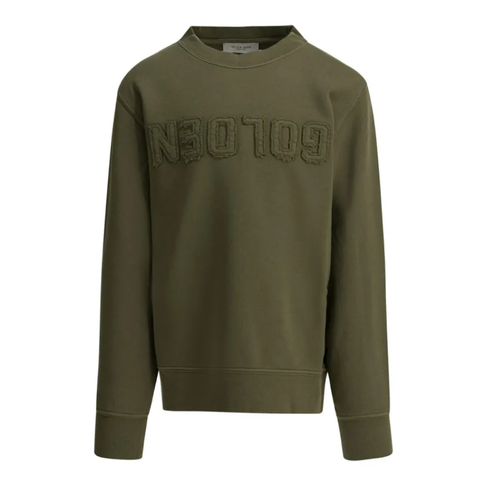 Das Golden Goose Reversed Logo Sweatshirt ist ein Baumwoll-Sweatshirt mit Rundhalsausschnitt und einem erhabenen, umgekehrten Logo für einen charaktervollen Alltagslook. Die gerippten Abschlüsse und die entspannte Form machen es einfach, es mit Jeans oder Joggern zu kombinieren. Hauptmerkmale: Grün | Dusty Olive | Baumwolle | Rundhalsausschnitt | Lange Ärmel | Erhabenes, umgekehrtes Logo auf der Vorderseite | Gerippter Kragen, Bündchen und Saum | Maße & Passform: Reguläre Passform | Zusammensetzung & Pflege: Hauptmaterial: 100% Baumwolle | Rippstrick: 98% Baumwolle, 2% Elasthan | Maschinenwäsche kalt, Schonwaschgang. Nicht bleichen. Flach zum Trocknen auslegen. Bei Bedarf kühl bügeln.