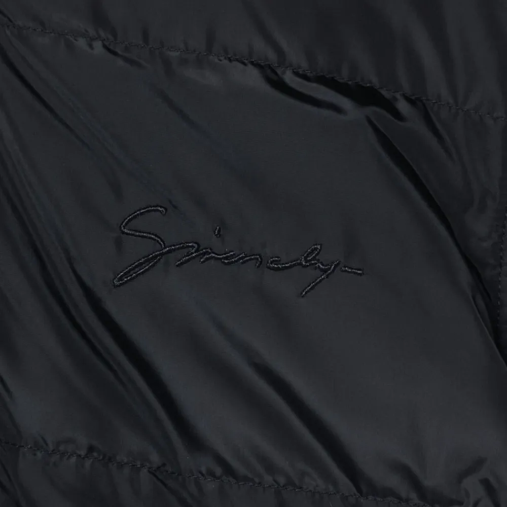 Die wendbare Pufferjacke von Givenchy bietet ein Zwei-in-Eins-Design mit Polsterung für vielseitigen Kälteschutz. Sie lässt sich zwischen gesteppten und glatten Seiten wechseln, um verschiedene Looks zu erzielen. Hauptmerkmale: Schwarz | Polyester | Isoliert (Entendaunen und Federn) | Wendbares Design | Frontreißverschluss | Zwei Fronttaschen | Gesteppte Konstruktion | Logo-Details (gestickt oder tonales 4G-Motiv) | Zusammensetzung und Pflege: Außenmaterial: 100 % Polyester | Füllung: 90 % Entendaunen, 10 % Federn | Maschinenwäsche