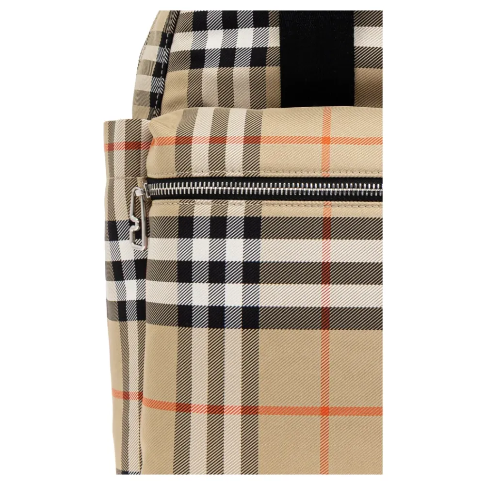 RUCKSACK MIT WICKELUNTERLAGE von Burberry Kids ist eine anspruchsvolle Wahl, die den jüngsten Enthusiasten von Stil und Komfort gewidmet ist. Entworfen im hochgradig erkennbaren beige-karierten Muster mit schwarzen, weißen und roten Akzenten verkörpert er die Quintessenz britischer Eleganz. Hergestellt aus hochwertigem synthetischem Material mit einer raffinierten Oberfläche, ist er nicht nur langlebig, sondern auch außergewöhnlich leicht zu reinigen – was ihn zum perfekten Begleiter für Familienabenteuer macht. Die klassische, abgerundete Form des Rucksacks, die breiten verstellbaren Riemen und die robusten Griffe sorgen für bequemes Tragen, während die praktische Vordertasche und durchdachten Details wie silberne Reißverschlüsse seine Einzigartigkeit unterstreichen. WARUM LOHNT ES SICH, DIESES PRODUKT ZU KAUFEN? * Ikonisches Burberry Kids Karomuster * Außergewöhnliche Langlebigkeit und einfache Reinigung * Durchdachte Details, die den Benutzerkomfort verbessern * Die ideale Wahl für Eltern, die Stil und Funktionalität schätzen Höhe: 41cm Breite: 30cm