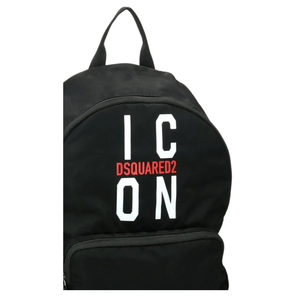 Dsquared2 Rucksack in Nylon-Konstruktion mit Lederdetails, entworfen mit einer Silhouette mit Reißverschluss und einem auffälligen, kontrastierenden roten und weißen Logo-Print für den täglichen Gebrauch. Hauptmerkmale: Schwarz | Nylon | Reißverschluss | Außentasche mit Reißverschluss | Verstellbare Schultergurte | Lederdetails | Kontrastierendes Rot | Weißer Logo-Print | Design mit Reißverschluss | Internes Logo-Etikett | Zusammensetzung & Pflege: 100% Nylon | Lederdetails