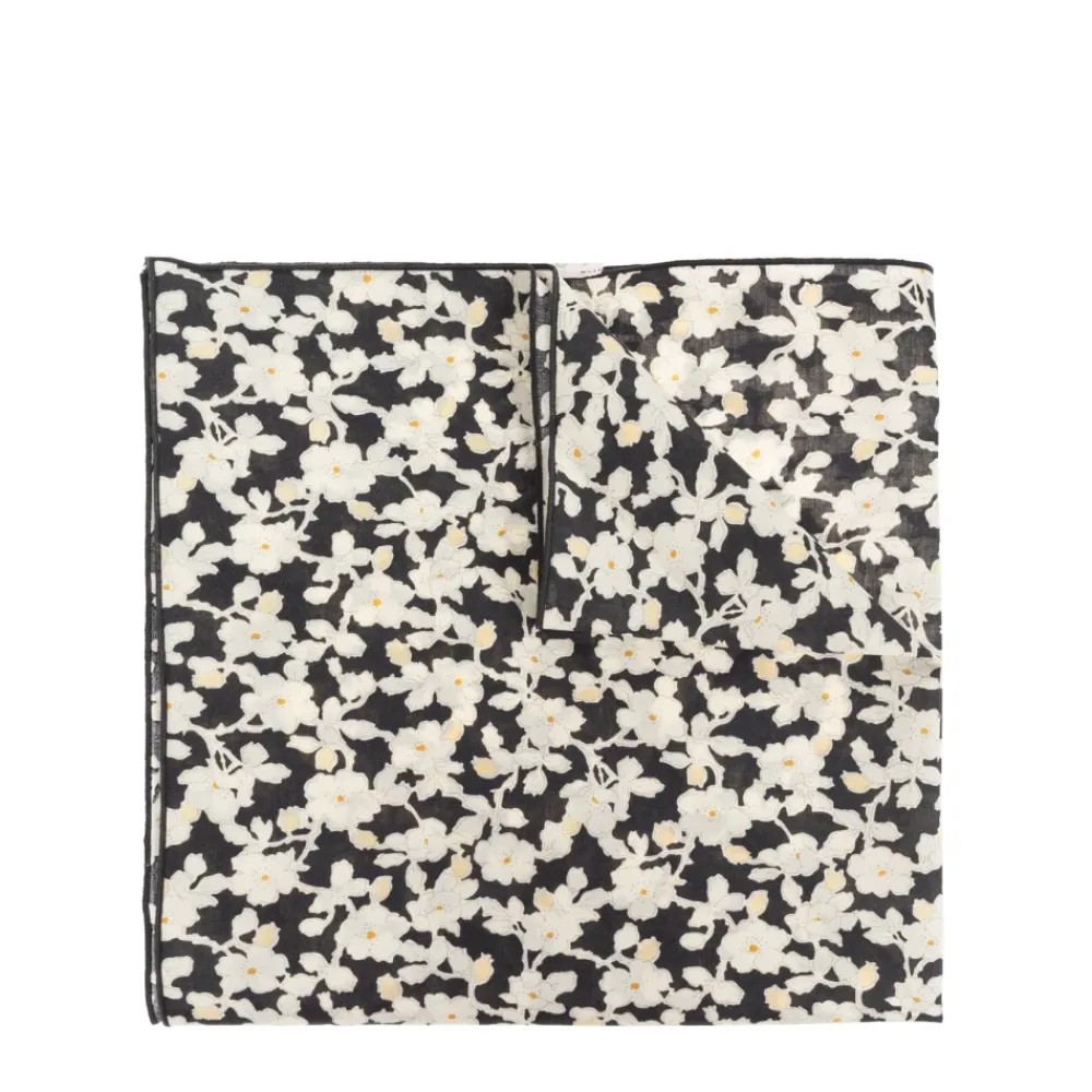 Der Blumenschal von BONPOINT ist eine subtile Fusion aus zeitloser Eleganz und jugendlicher Frische. Hergestellt aus weicher Baumwolle bietet er außergewöhnliche Zartheit und bietet außergewöhnlichen Tragekomfort. Die klassische rechteckige Form und perfekt verarbeiteten Kanten unterstreichen die Liebe zum Detail, die für das französische Modehaus charakteristisch ist. Die gesamte Oberfläche des Schals ist mit einem kühnen, dichten Blumenmotiv verziert – weiße Blumen mit zarten gelben Akzenten erhellen den tiefen schwarzen Hintergrund. Eine dezente, subtile Inschrift entlang des Randes ist ein bemerkenswert raffiniertes Detail, das von Luxusliebhabern geschätzt wird. WARUM LOHNT ES SICH, DIESES PRODUKT ZU KAUFEN? * Hervorragende Handwerkskunst aus Baumwolle * Einzigartiges Blumenmotiv, das Charme und Stil verleiht * Subtile Details und Veredelungen, die das Produkt von anderen abheben * Exklusivität und der einzigartige Charakter der Marke Bonpoint * Natürlicher Tragekomfort – perfekt für jede Jahreszeit