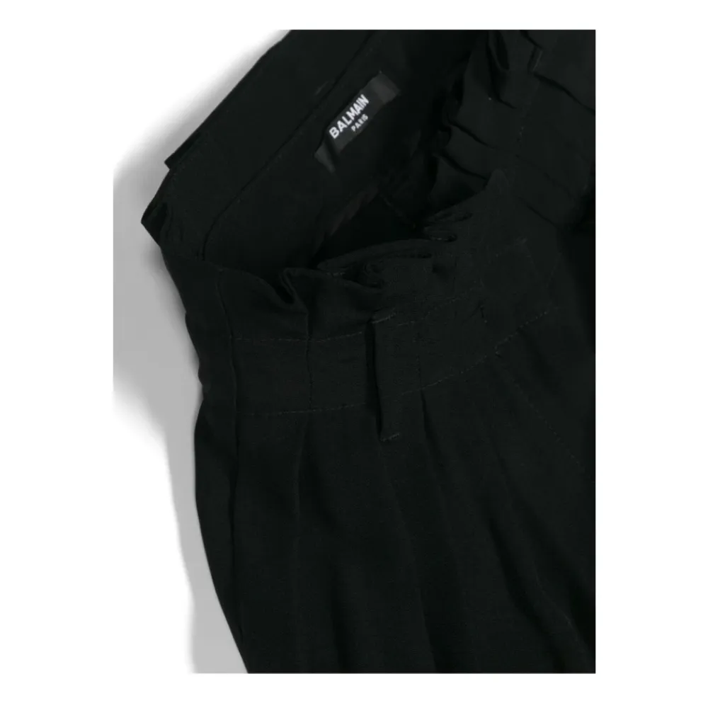 Heben Sie den Stil Ihres kleinen Mädchens mit diesen eleganten Suit Trousers von BALMAIN KIDS hervor. Hergestellt aus einer luxuriösen Mischung aus 58% Acetat und 42% Viskose, strahlen diese schwarzen Hosen Raffinesse und Eleganz aus. Perfekt für jeden Anlass, diese Hosen sind eine unverzichtbare Ergänzung zu ihrer Garderobe. Bestellen Sie jetzt und setzen Sie ein modisches Statement!