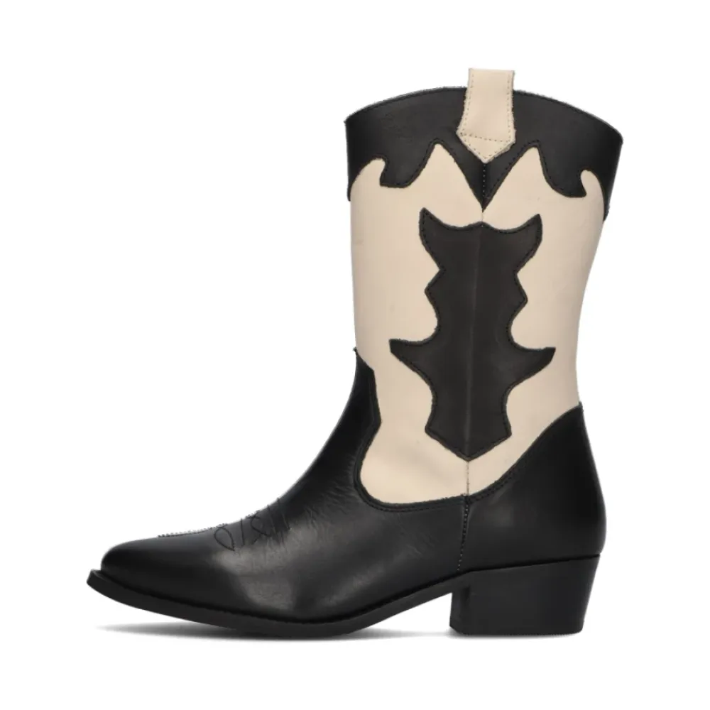 Entdecken Sie die neue Schuhmarke für coole Kinder, WYSH, die für Wear Your SHoes steht und perfekt für unabhängige Mädchen ist, die ihrem eigenen Stil folgen. Mit anderen Worten, sei du selbst! Tragen Sie die Schuhe, die Sie möchten, auf die Art und Weise, die Ihnen gefällt, zu jeder Zeit. Diese trendigen Modelle bestehen aus hochwertigen Materialien und sind sorgfältig für schnell wachsende Füße konzipiert. Der stilvolle schwarze Cowboystiefel NOLIA ist aus Leder mit einem off-weißen Schaft gefertigt. Zu den lustigen Details gehören Nähte auf dem Spann, schwarze Muster auf dem Schaft, eine Zuglasche oben, ein abgerundeter Schaft und ein geschichteter Blockabsatz. Der seitliche Reißverschluss erleichtert das An- und Ausziehen. Das Futter besteht aus Textil mit einer festen Ledersohle. Die Profilsohle aus Gummi sorgt für Stabilität, mit einer Absatzhöhe von 4 cm und einer Schaftlänge von 22 cm. Wie würden Sie diese trendigen Stiefel kombinieren?